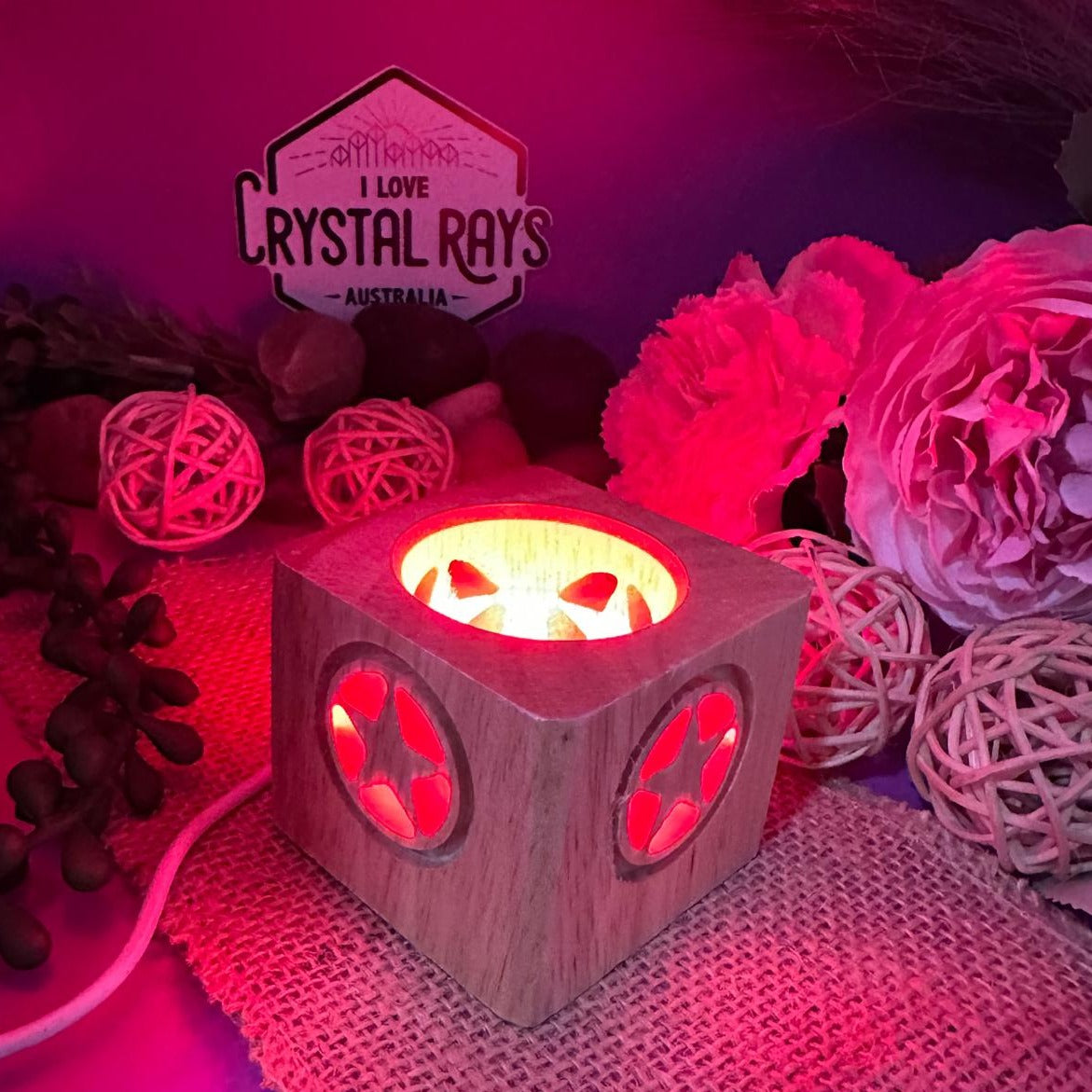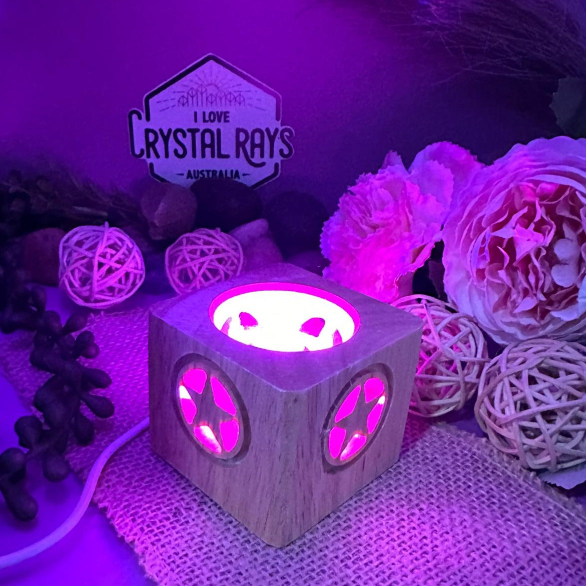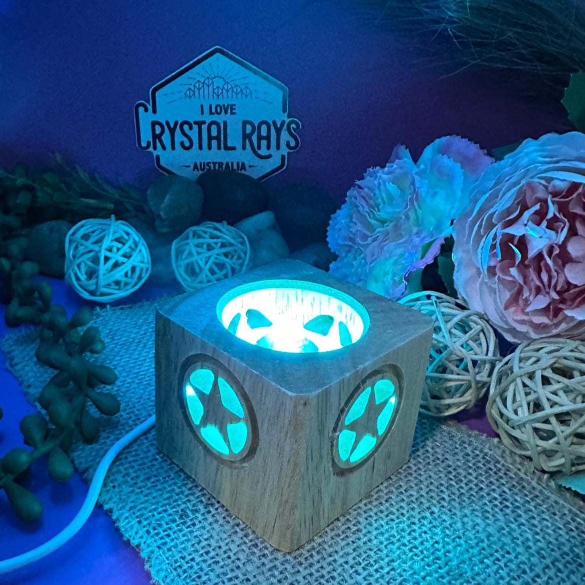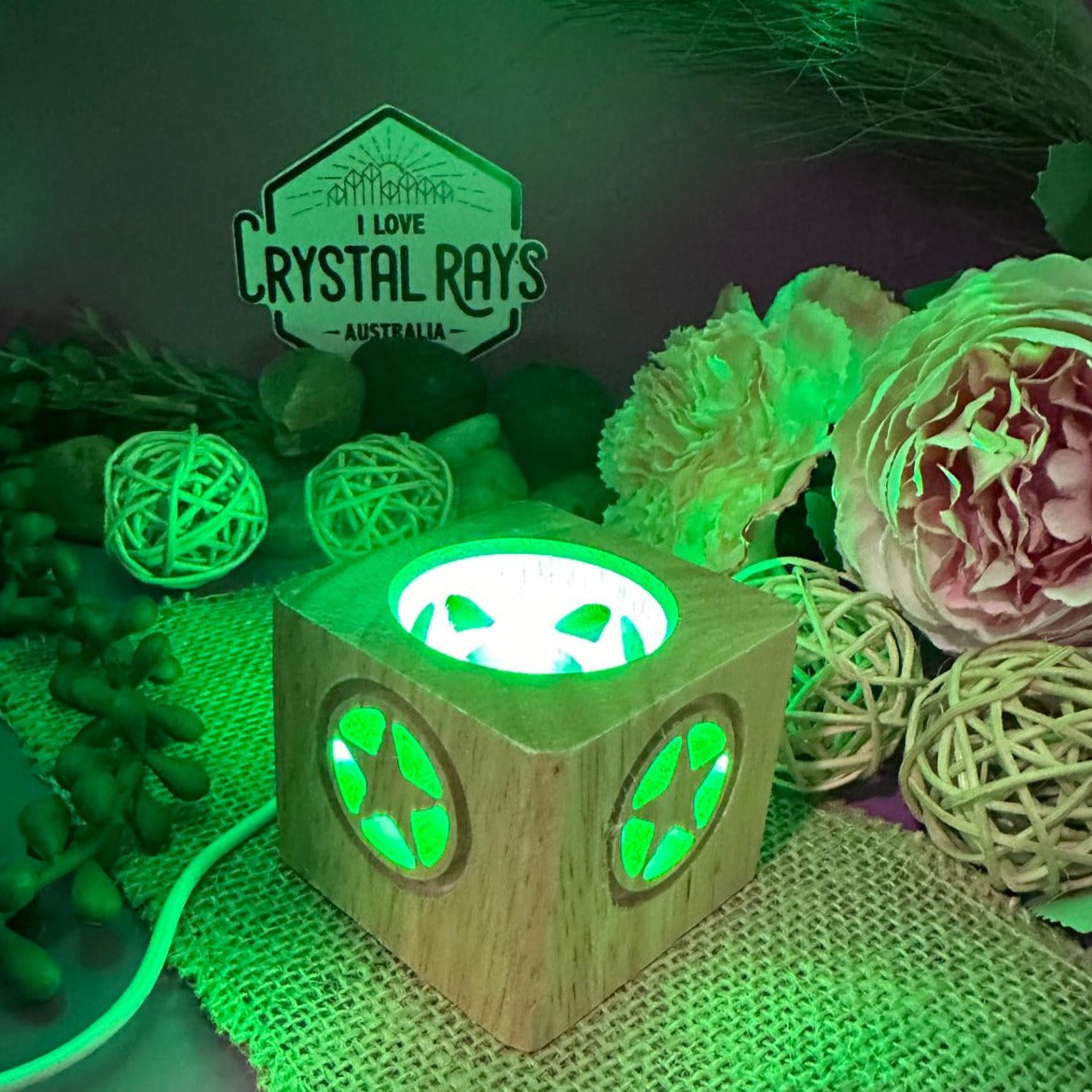This Colour LED Wooden Cube Stand with a Pentagram cutout is a mystical masterpiece for your crystal spheres. With its sacred geometry and shifting hues, it’s like placing your stone on a portal of elemental magic.