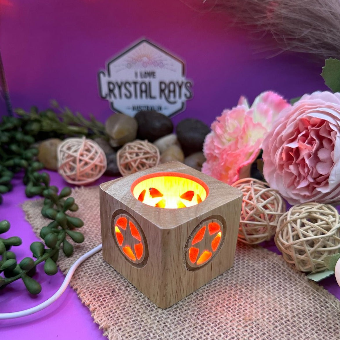 • Wooden Cube Design: Adds grounding warmth and a touch of natural elegance.