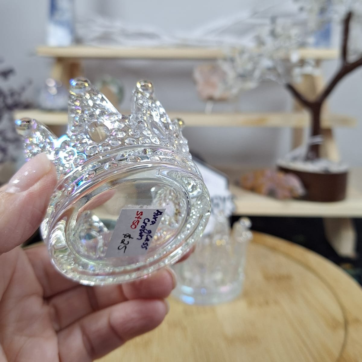 Elevate your space with the Aura Glass Crown Stand! Made with aura glass, this sphere stand adds a touch of elegance and sophistication to any room. Showcase your favourite decorative spheres or use it as a unique jewellery holder. The possibilities are endless with this versatile and stylish stand.