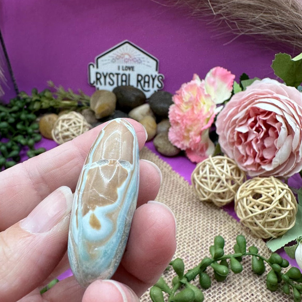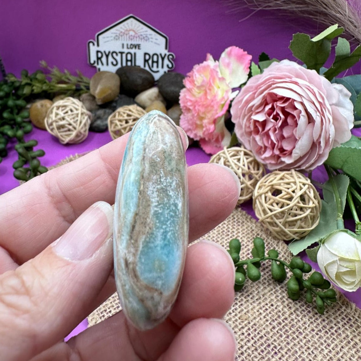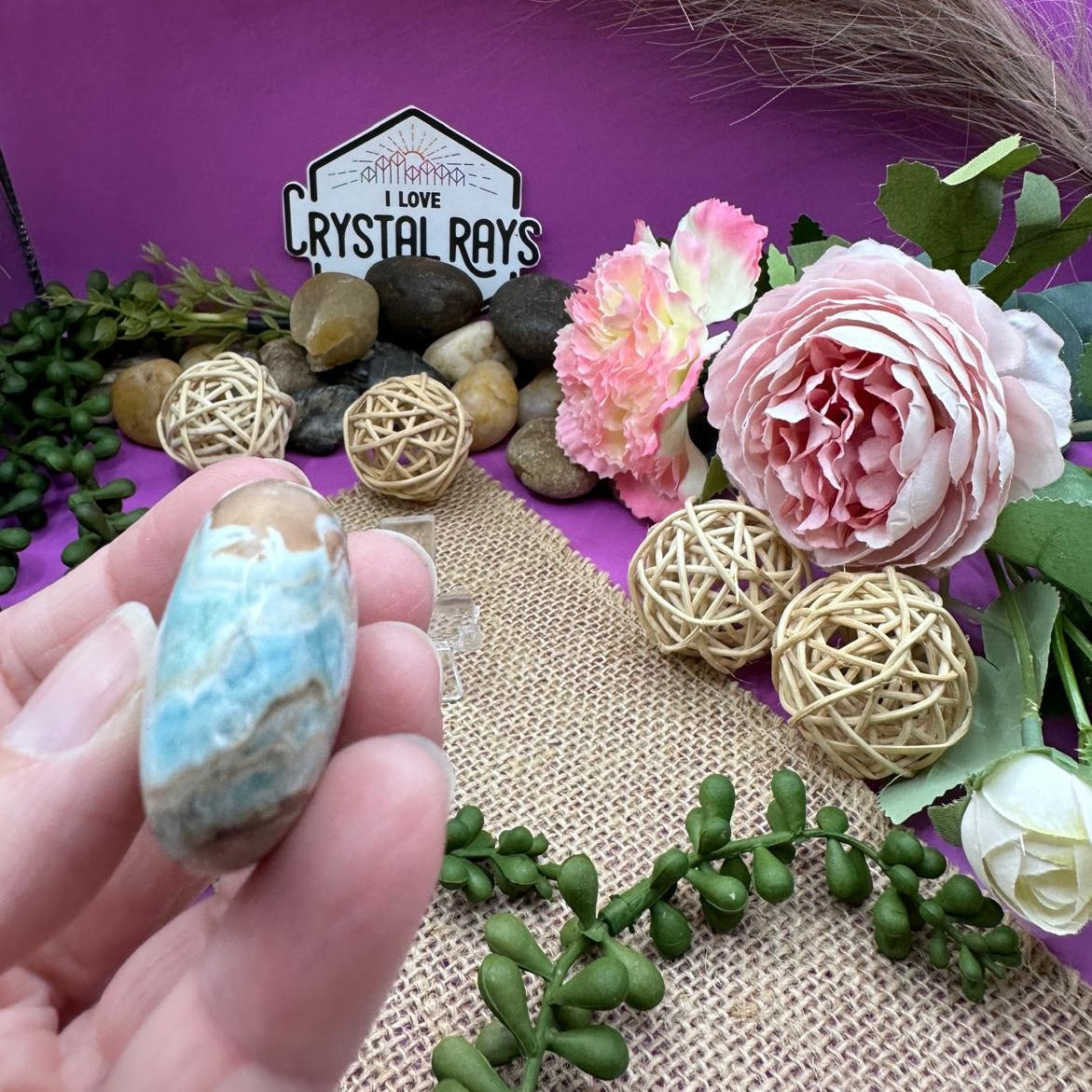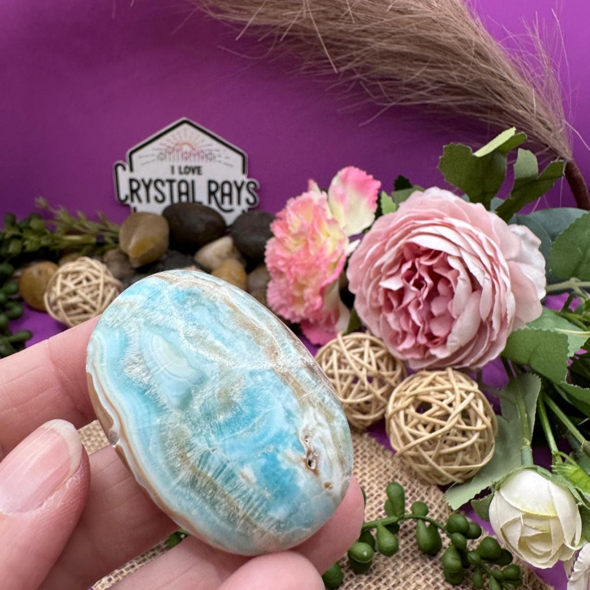 Blue Aragonite Palm Stone, perfect for emotional healing, meditation, and gentle energy work: