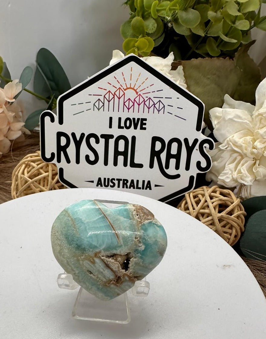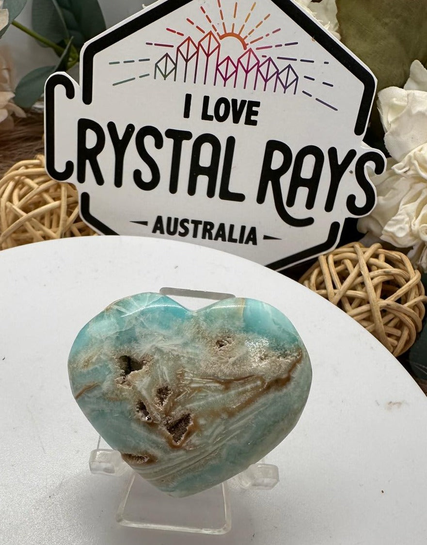 A Blue Aragonite Heart is a soothing and emotionally uplifting crystal carving that combines the gentle energy of Blue Aragonite with the symbolic power of the heart shape. Here's what makes it special: