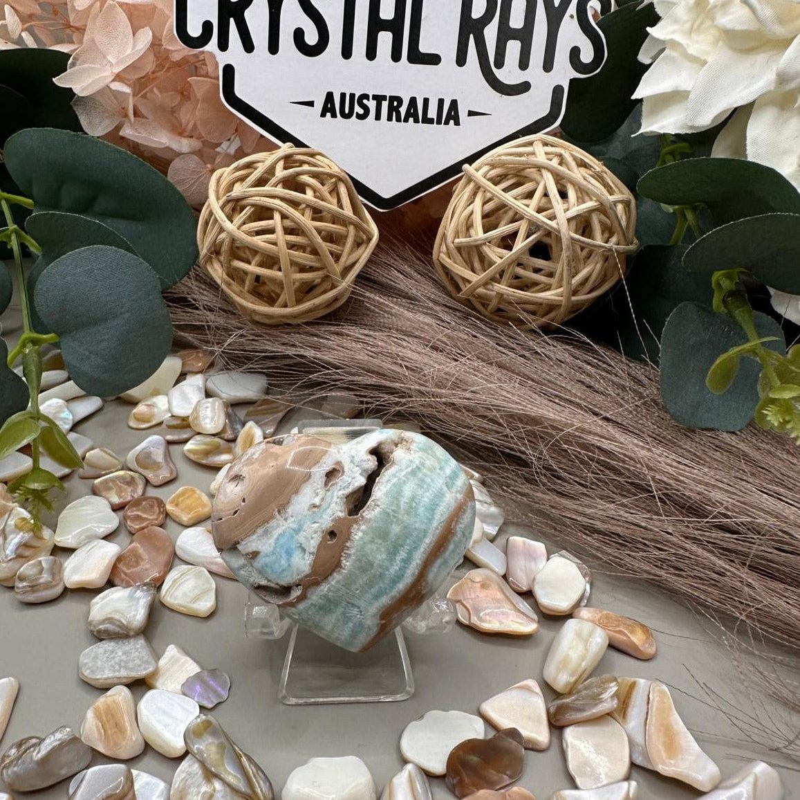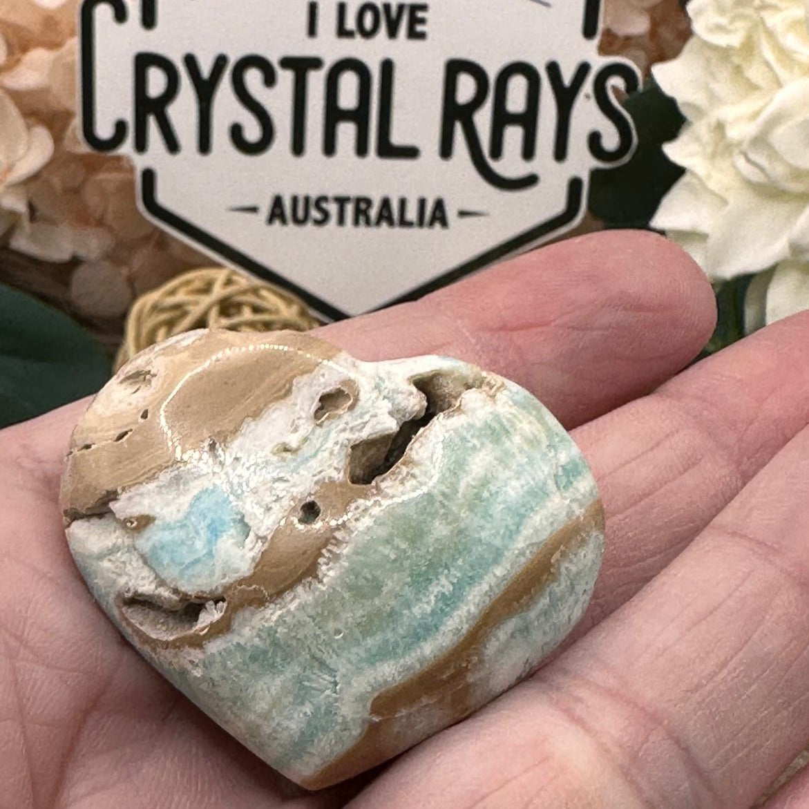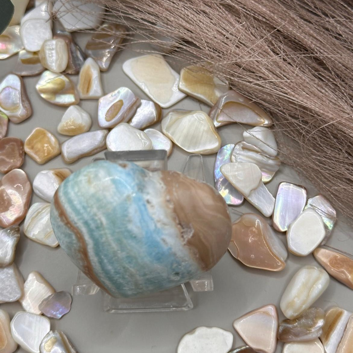 A Blue Aragonite Heart is a soothing and emotionally uplifting crystal carving that combines the gentle energy of Blue Aragonite with the symbolic power of the heart shape. Here's what makes it special: