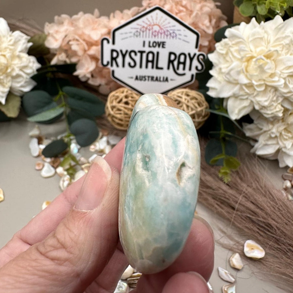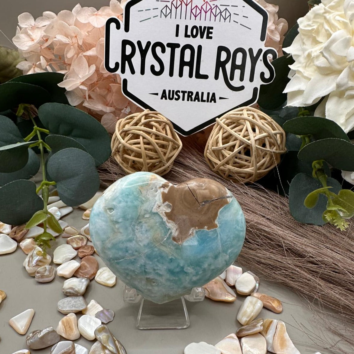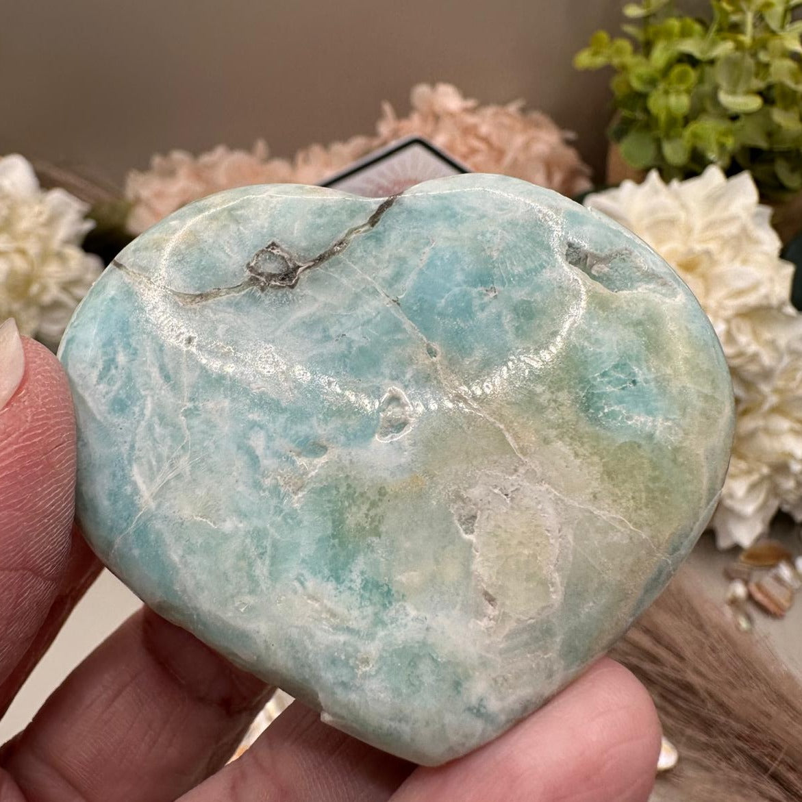 A Blue Aragonite Heart is a soothing and emotionally uplifting crystal carving that combines the gentle energy of Blue Aragonite with the symbolic power of the heart shape. Here's what makes it special: