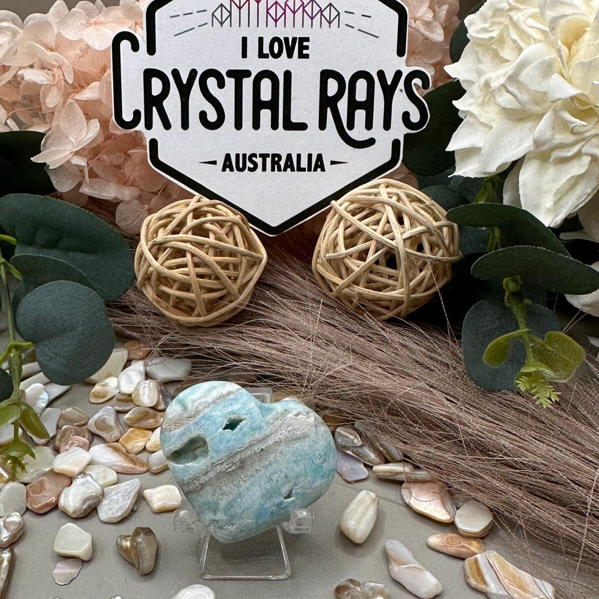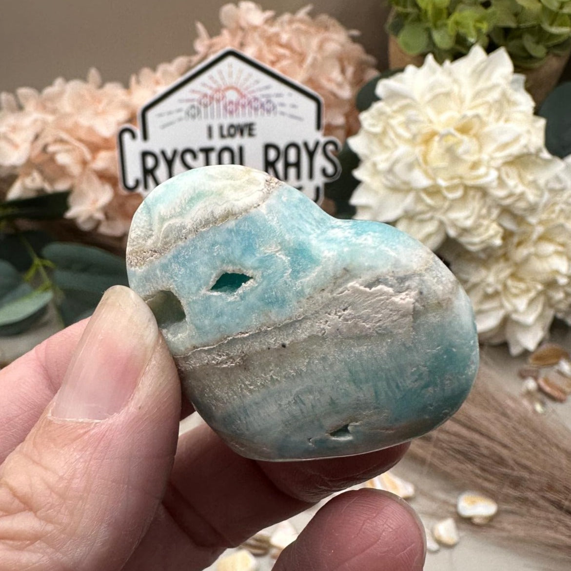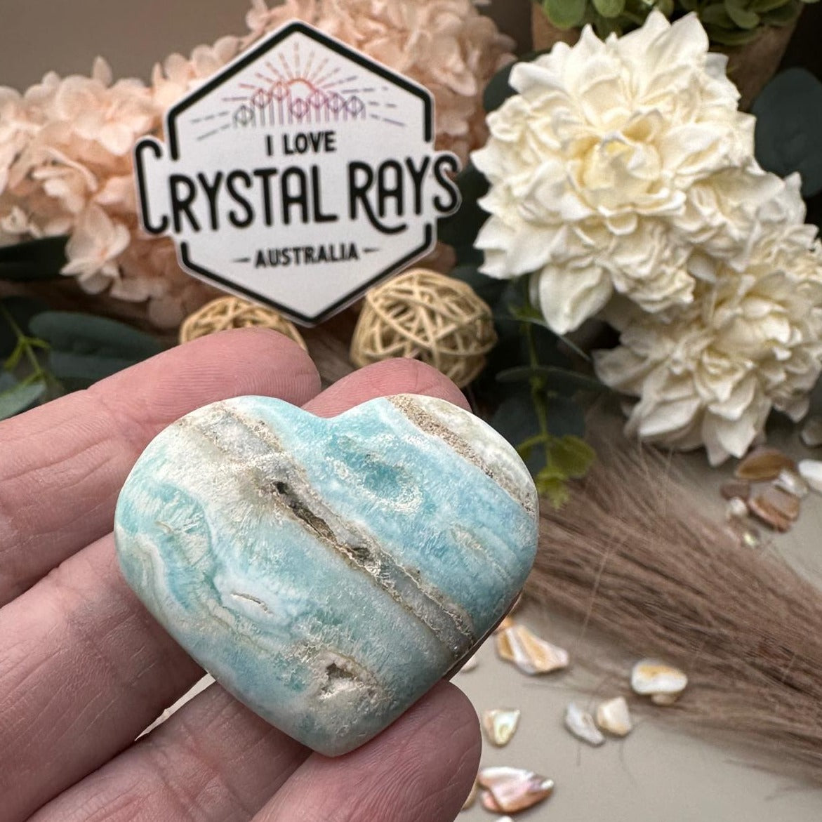 A Blue Aragonite Heart is a soothing and emotionally uplifting crystal carving that combines the gentle energy of Blue Aragonite with the symbolic power of the heart shape. Here's what makes it special: