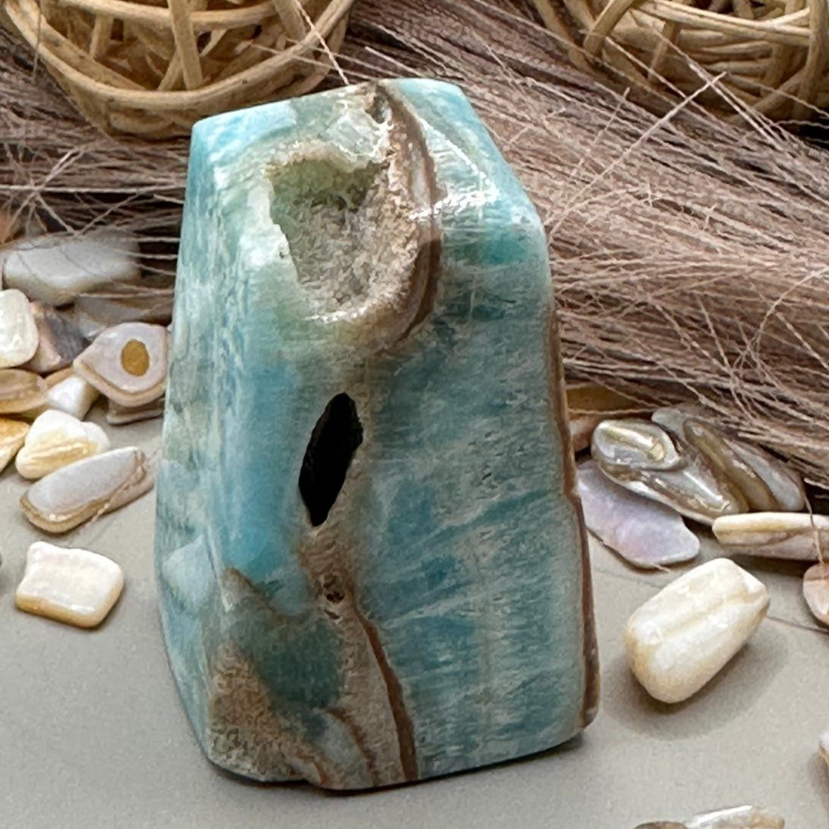 A Blue Aragonite Tower is a visually striking and energetically uplifting crystal that blends soft blue tones with calming, transformative energy. Here's everything you need to know: