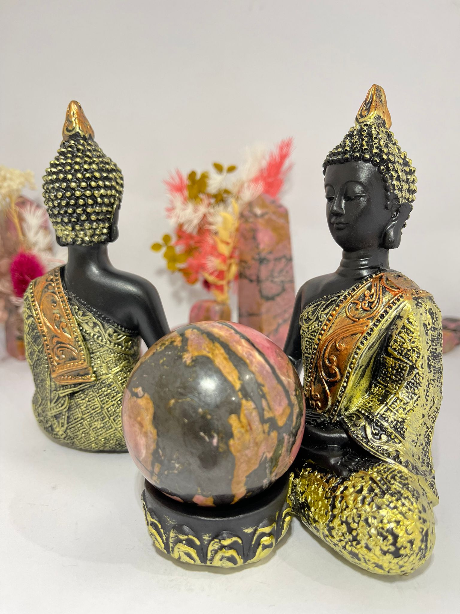 Elevate your decor with our luxurious Buddha Resin Sphere Stand in gold. Crafted from high-quality materials, this stand is both elegant and functional. Its unique design showcases your favourite sphere and adds an artistic touch to any space. Create a zen ambiance with this exclusive piece.