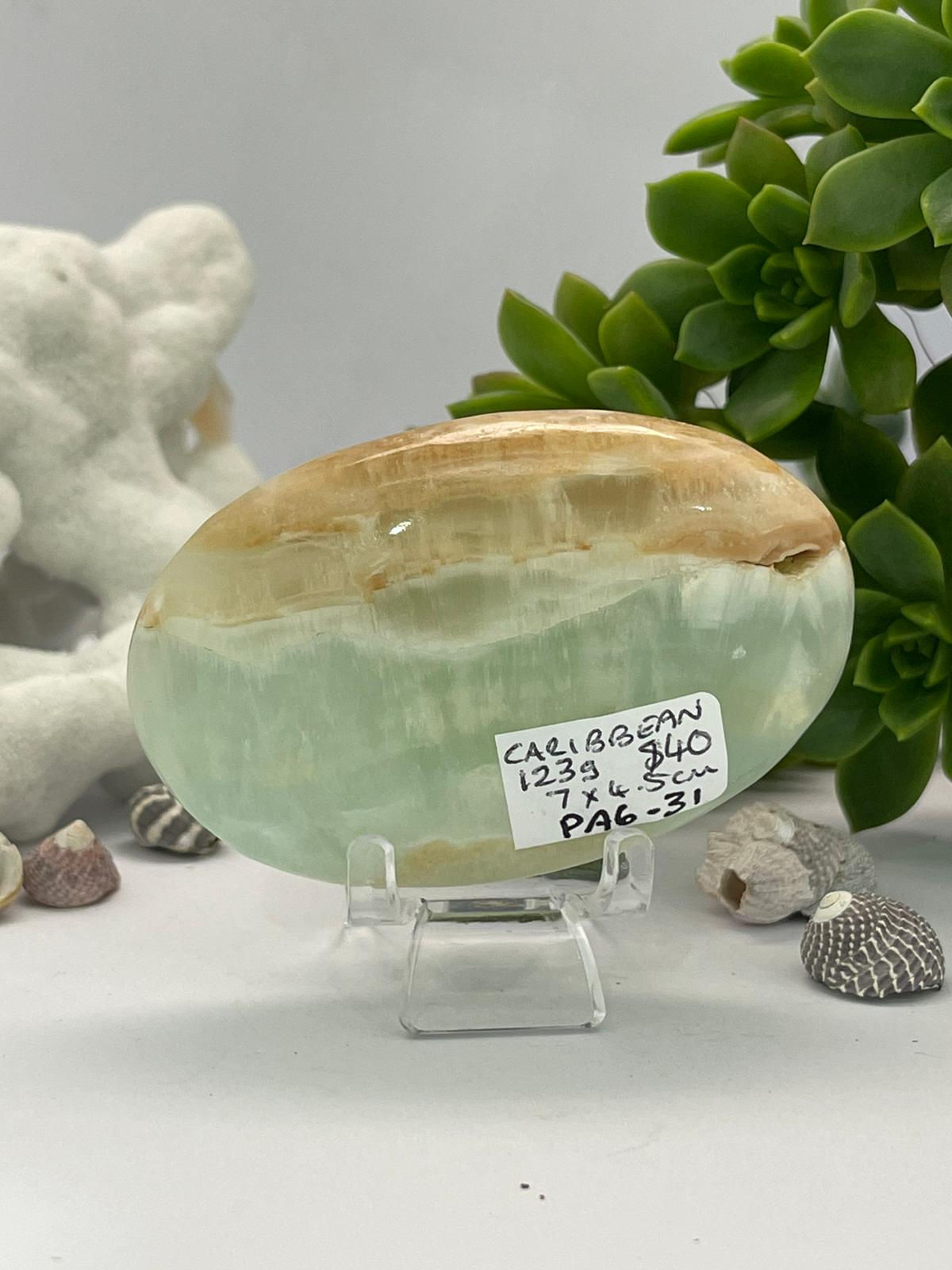 Caribbean Blue Calcite ~ Palm stone