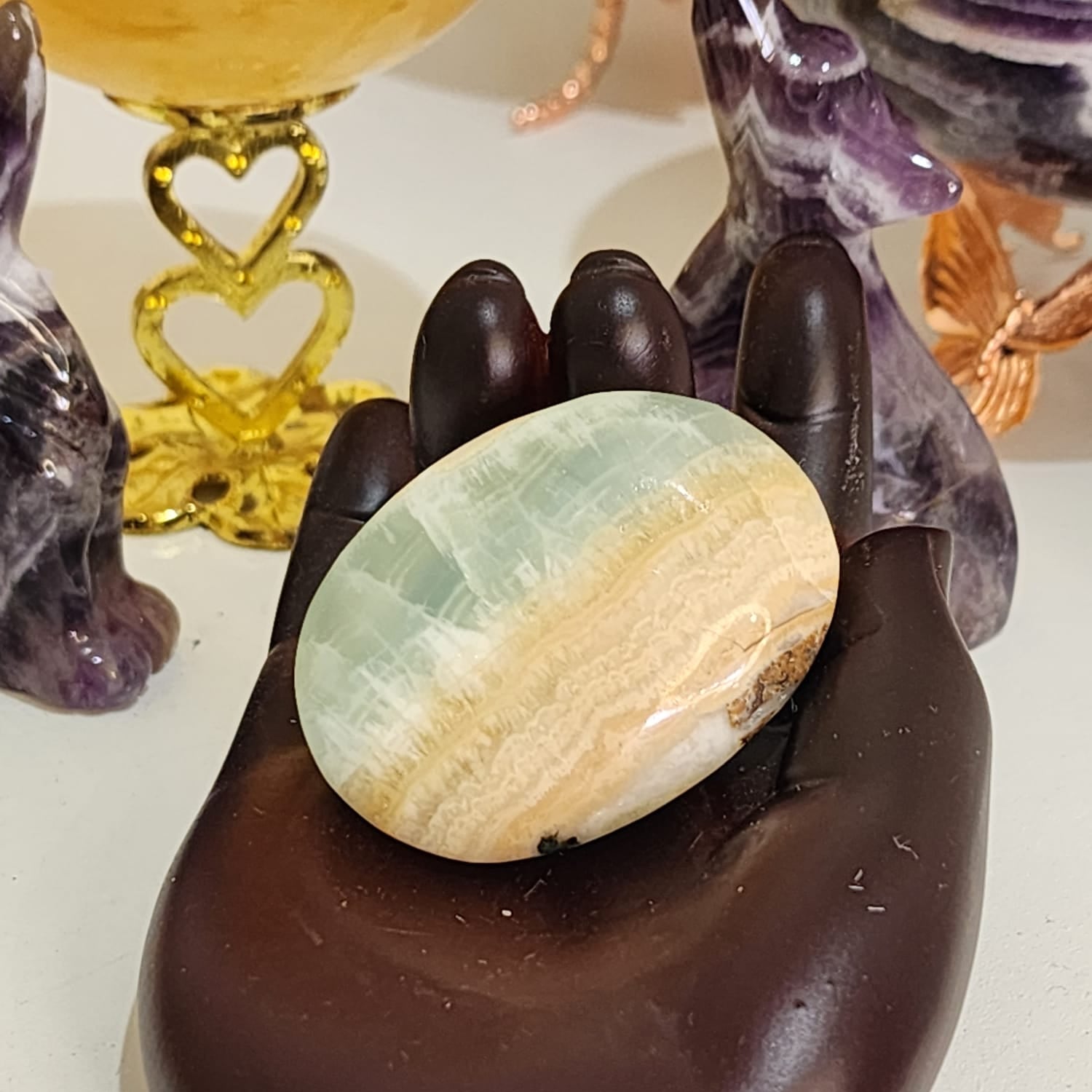 šš Caribbean Blue Calcite ~ Palm Stone