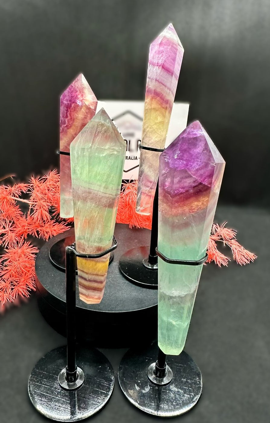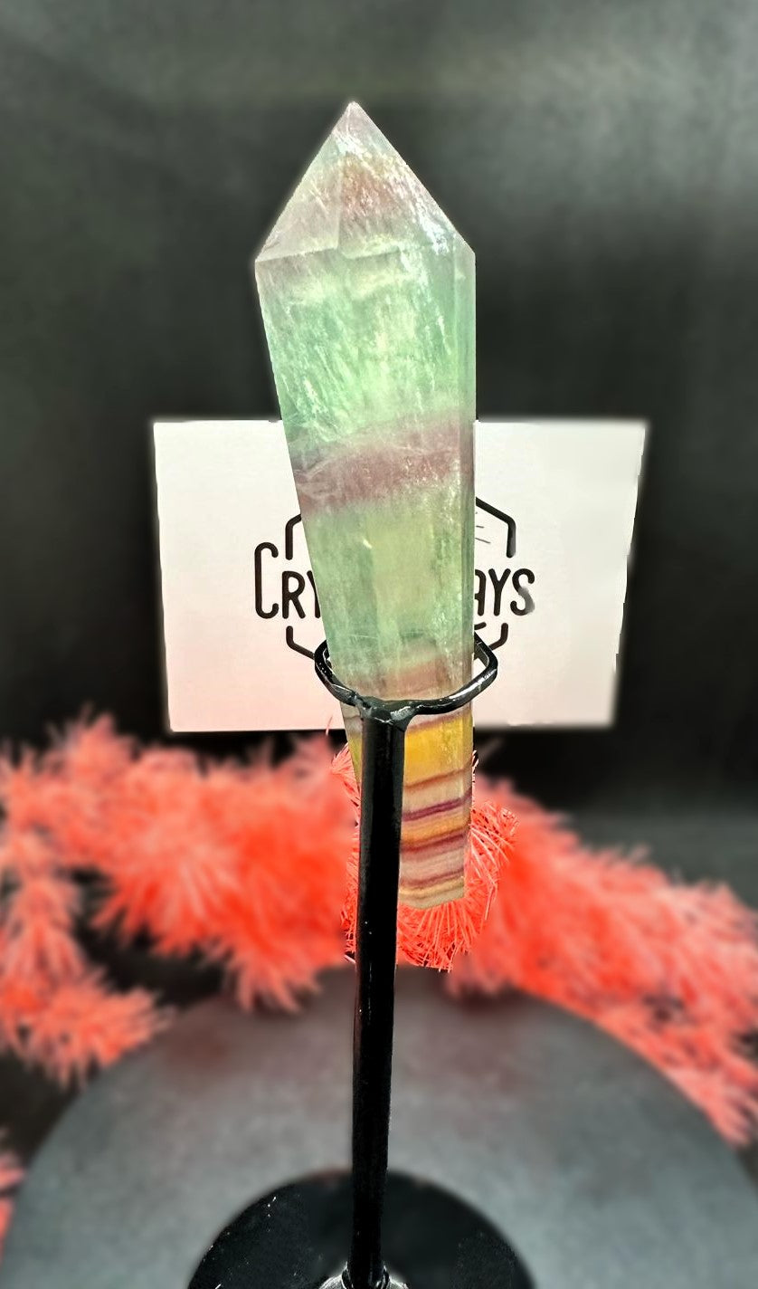 Here are beautiful Rainbow Fluorite wands with stands—ideal for clarity, protection, and chakra alignment. These pieces combine vibrant colour bands with polished finishes and elegant display bases, perfect for your altar or healing space🌈✨.