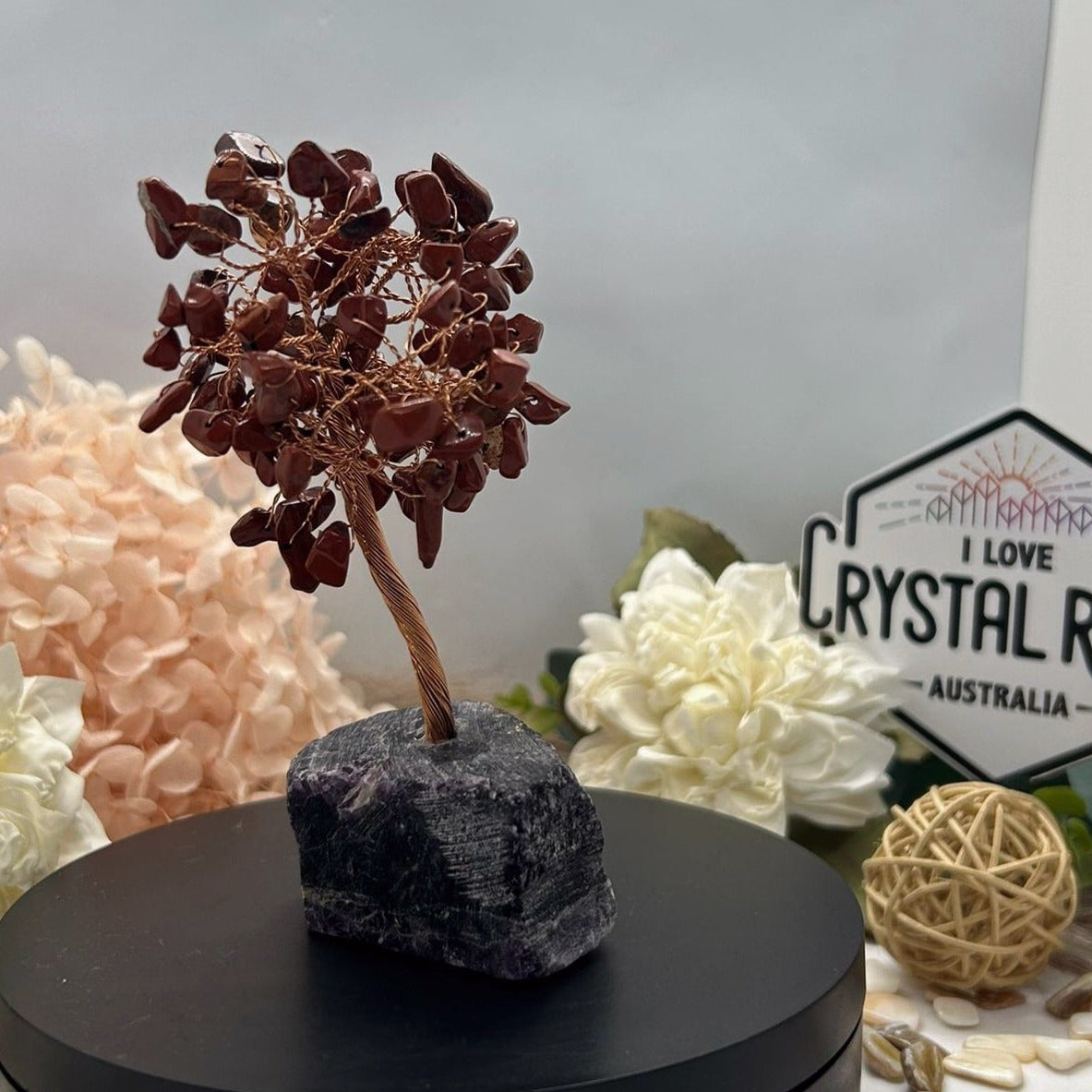 This stunning Red Jasper Tree is expertly crafted and stands tall upon a natural Raw Lepidolite base. Red Jasper is known for its grounding and nurturing properties, making this tree a perfect addition to your home or office space. Bring positive, earthy energy into your environment with this unique piece!