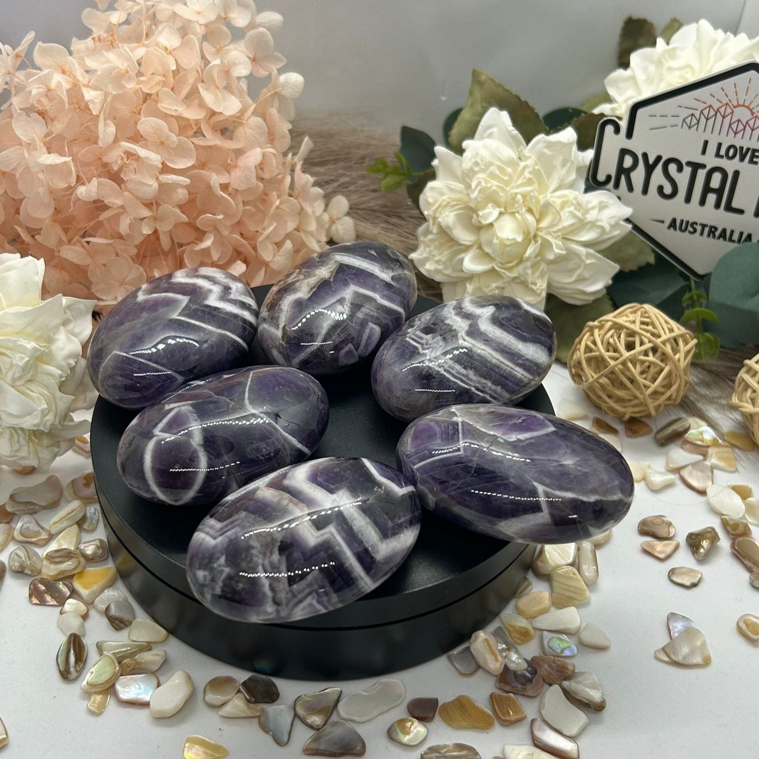 Dream Amethyst—also known as Chevron Amethyst—is a stunning crystal that blends the deep purples of amethyst with the milky whites of quartz in a distinctive V-shaped or banded pattern. It’s not just eye-catching—it’s also packed with meaning and metaphysical punch.