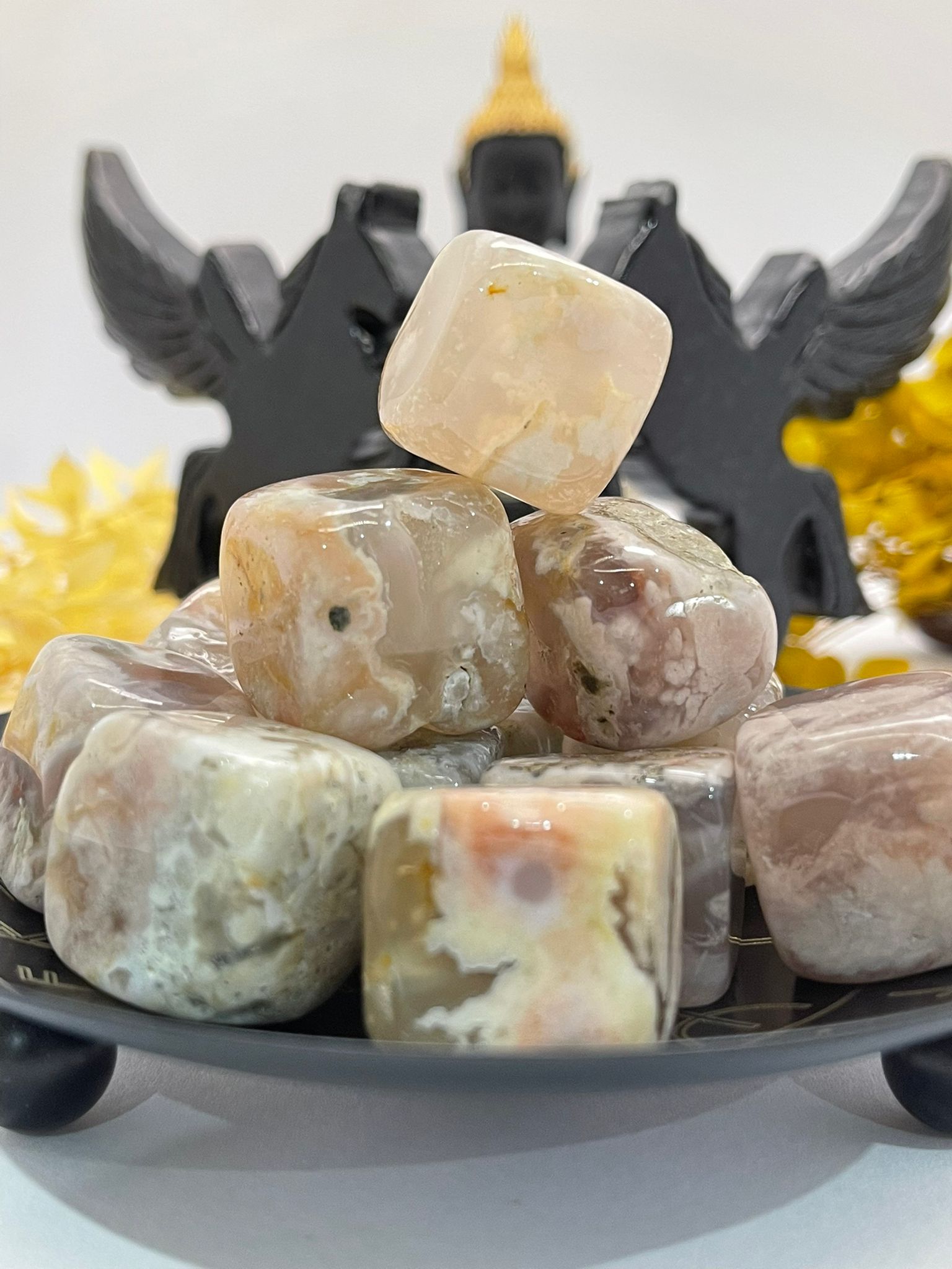 Flower Agate possesses a feminine and maternal essence that is both comforting and stabilizing, yet its appearance is captivating and seemingly otherworldly. This distinctive stone is renowned for creating the perfect conditions for restoring emotional equilibrium, achieving emotional healing, and advancing in life with elegance and assurance.