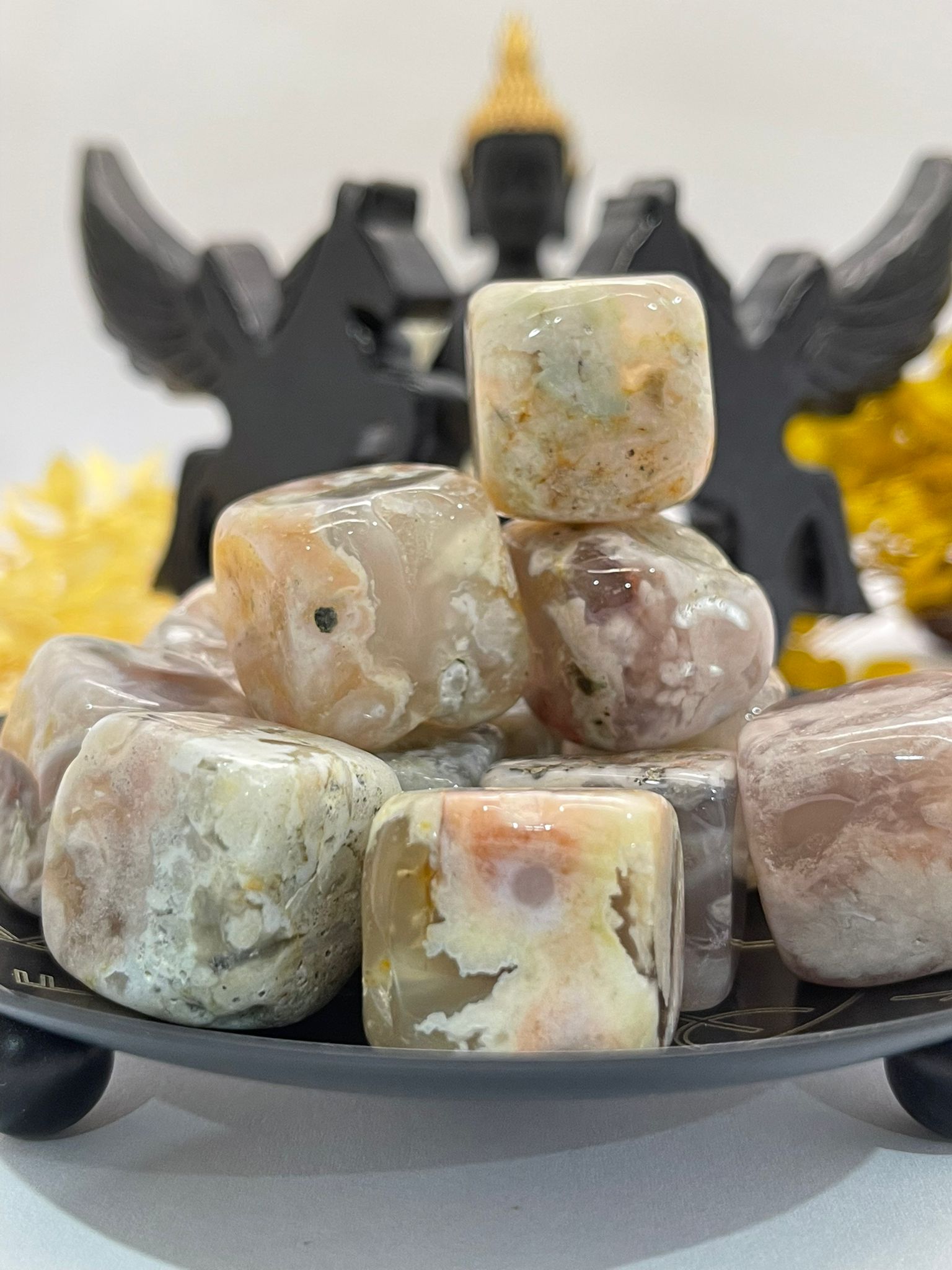 Flower Agate aids in reaching our fullest potential, shielding us from fears and self-doubt. It encourages us to manifest and cultivate our dreams. The energy of Flower Agate kindles a passion for pursuing dreams and living life to its fullest extent.