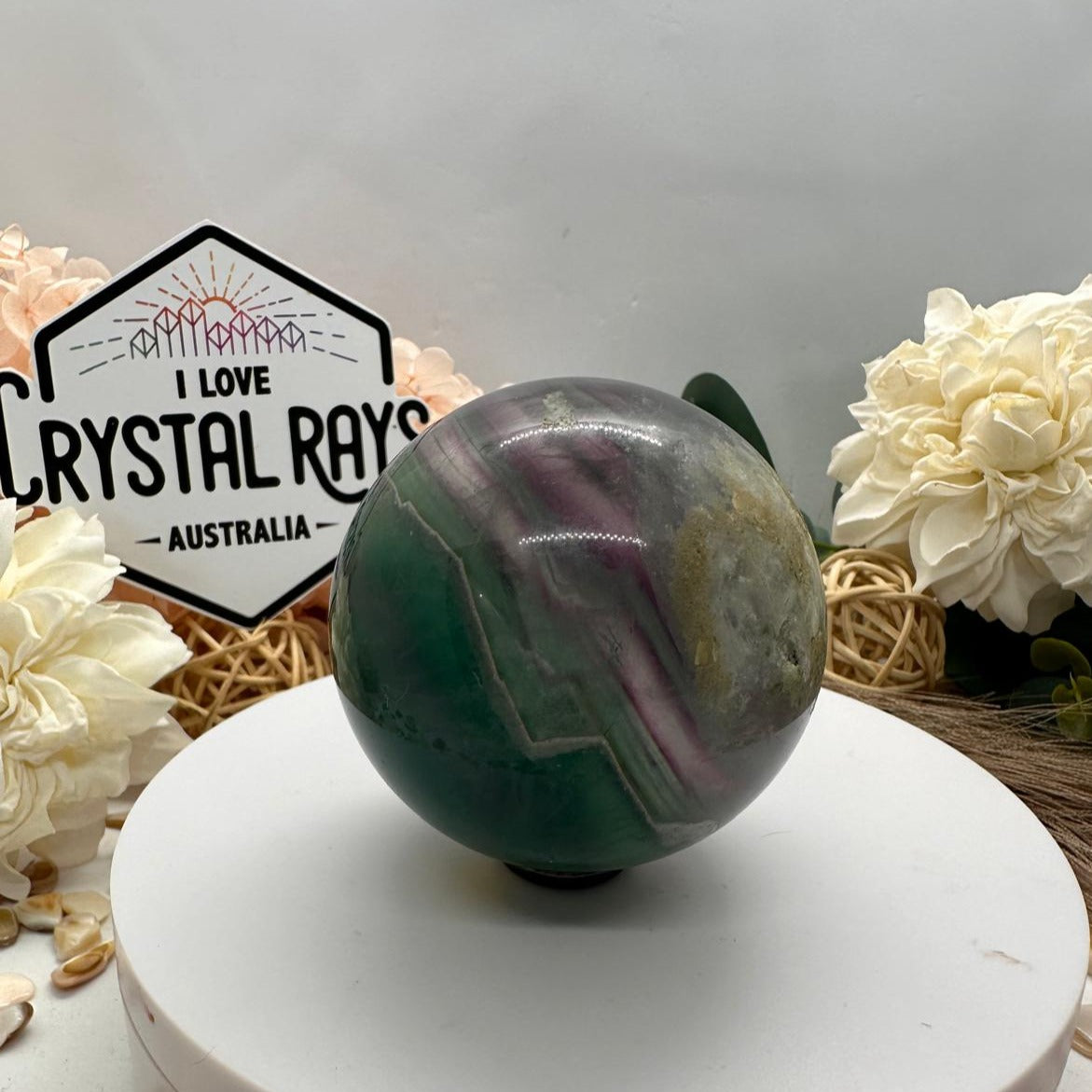 Whether you choose Rainbow Fluorite for full chakra alignment, Green Fluorite for emotional healing, or Purple Fluorite for spiritual insight, the sphere shape radiates energy evenly, creating a peaceful and balanced field around it.