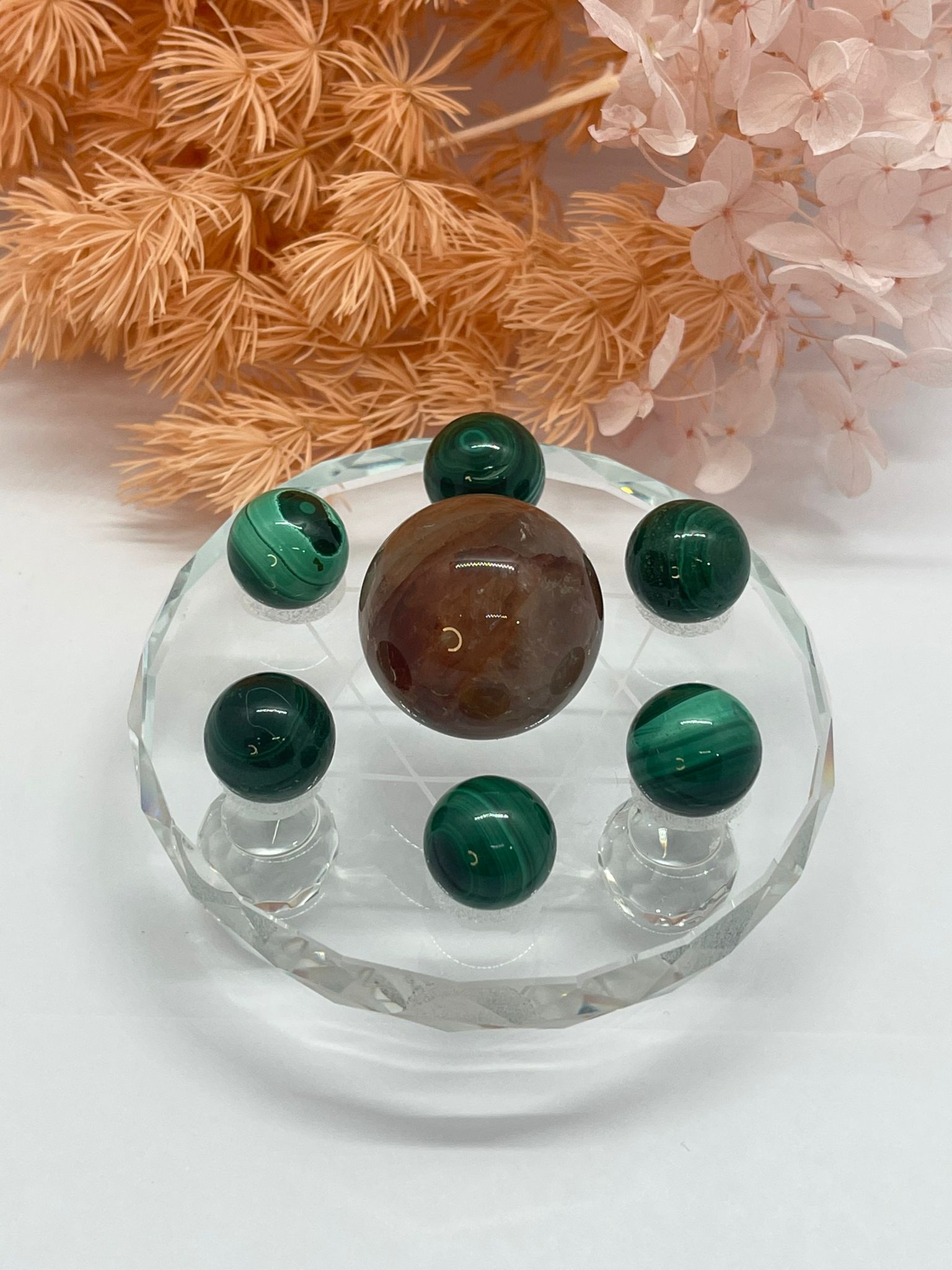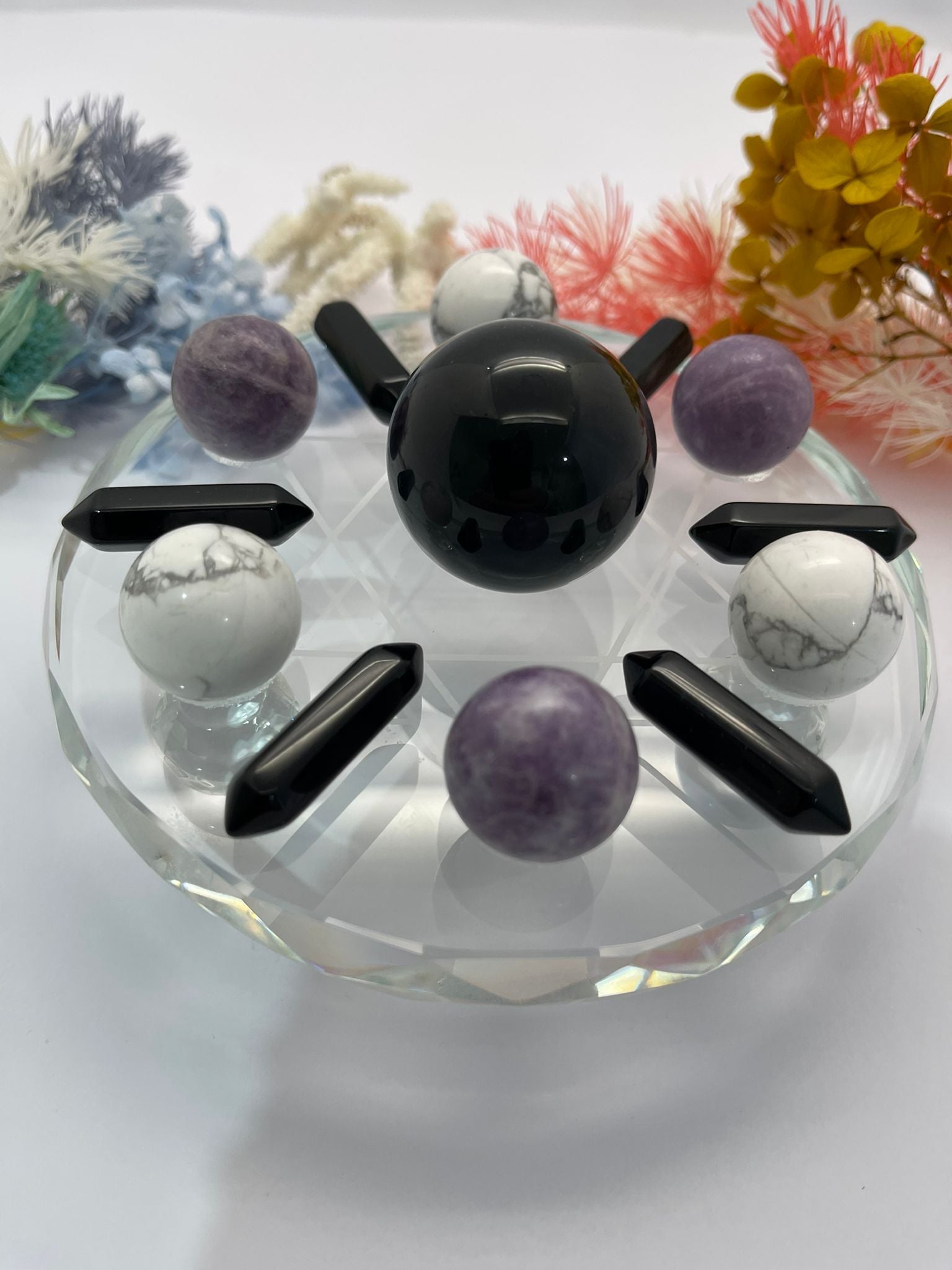 Enhance the charm and appeal of your crystal collection with our exquisitely designed Engraved Crystal Ball Holder. This unique piece serves as both a practical crystal grid and a captivating display for your crystal spheres. Featuring an intricately engraved seven-pointed star, it gently cradles each crystal ball, providing a stable and elegant showcase for your treasured assemblage.