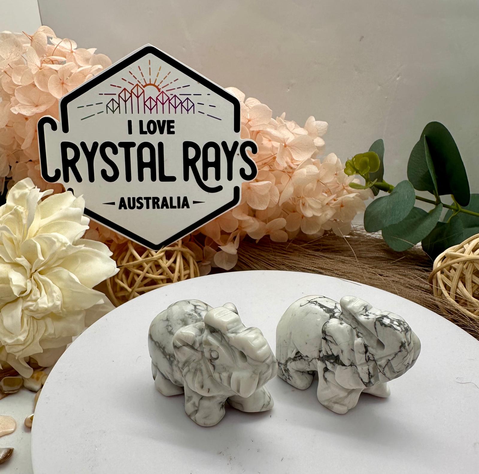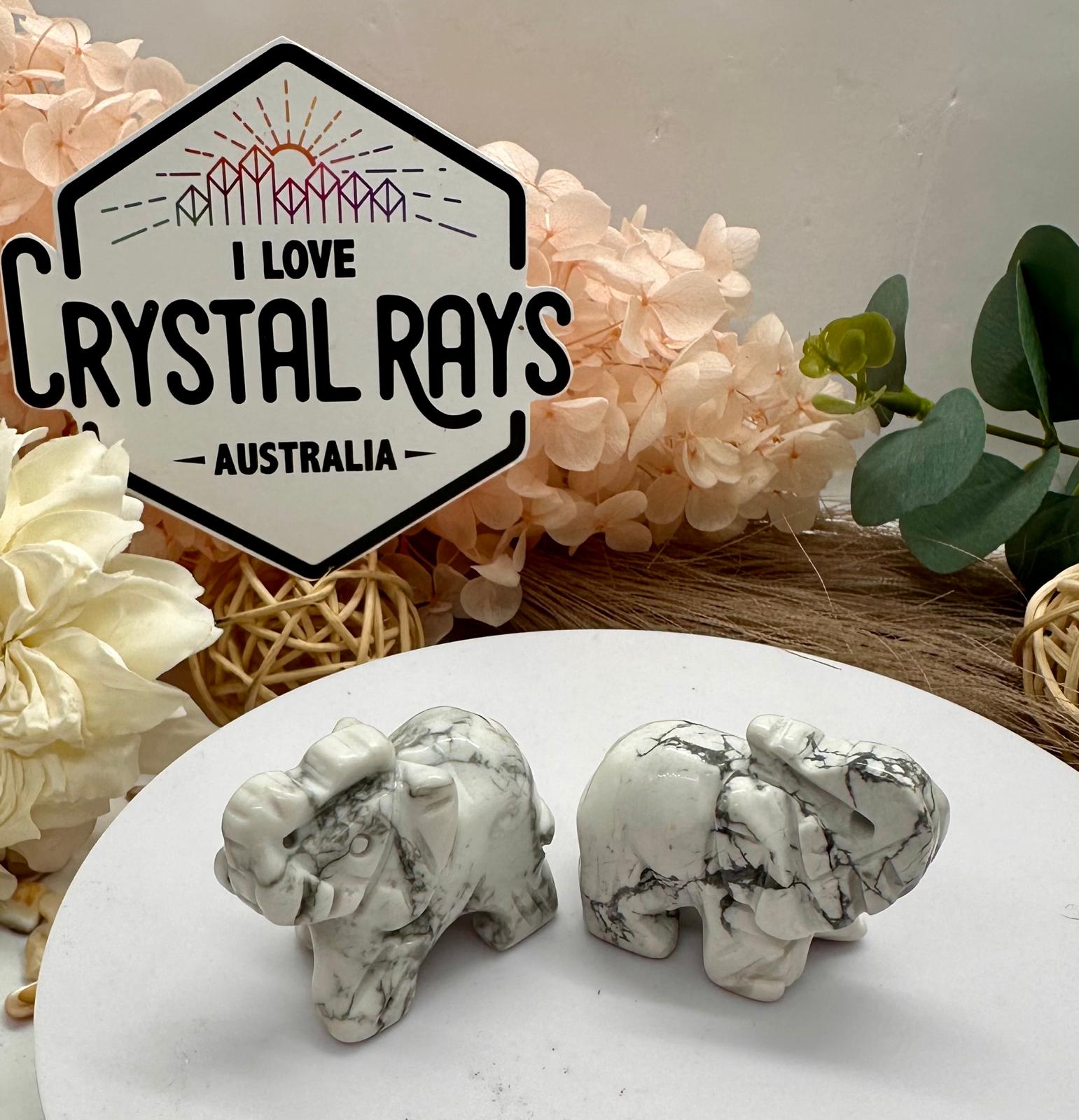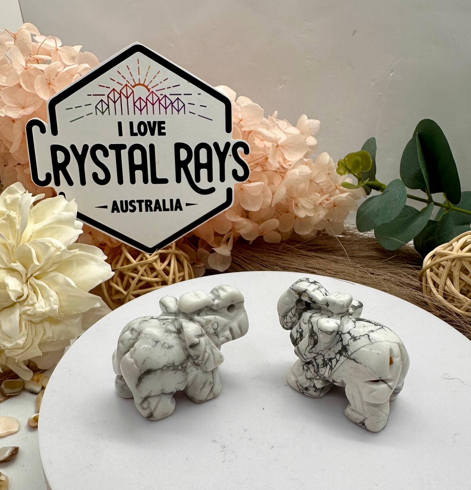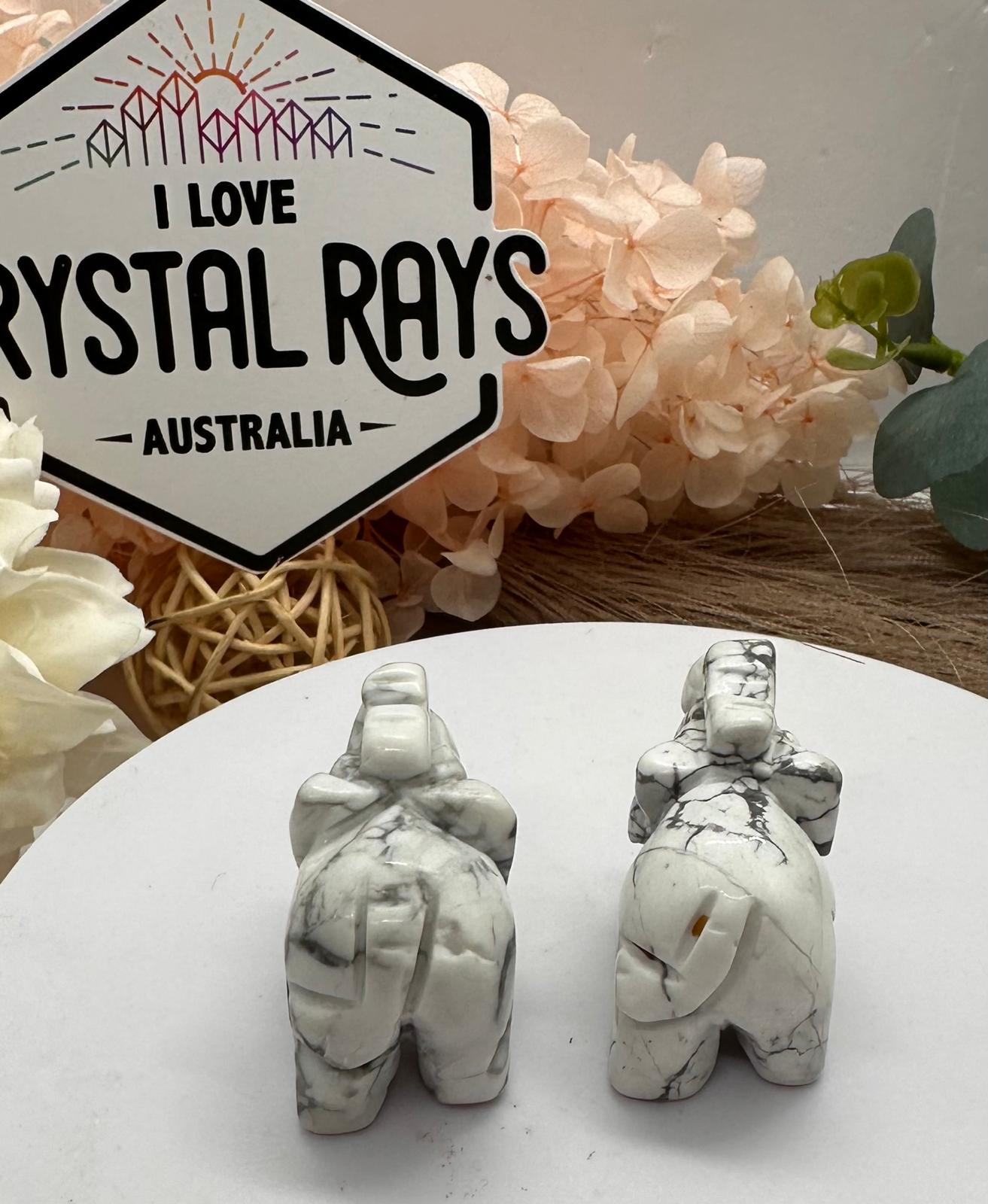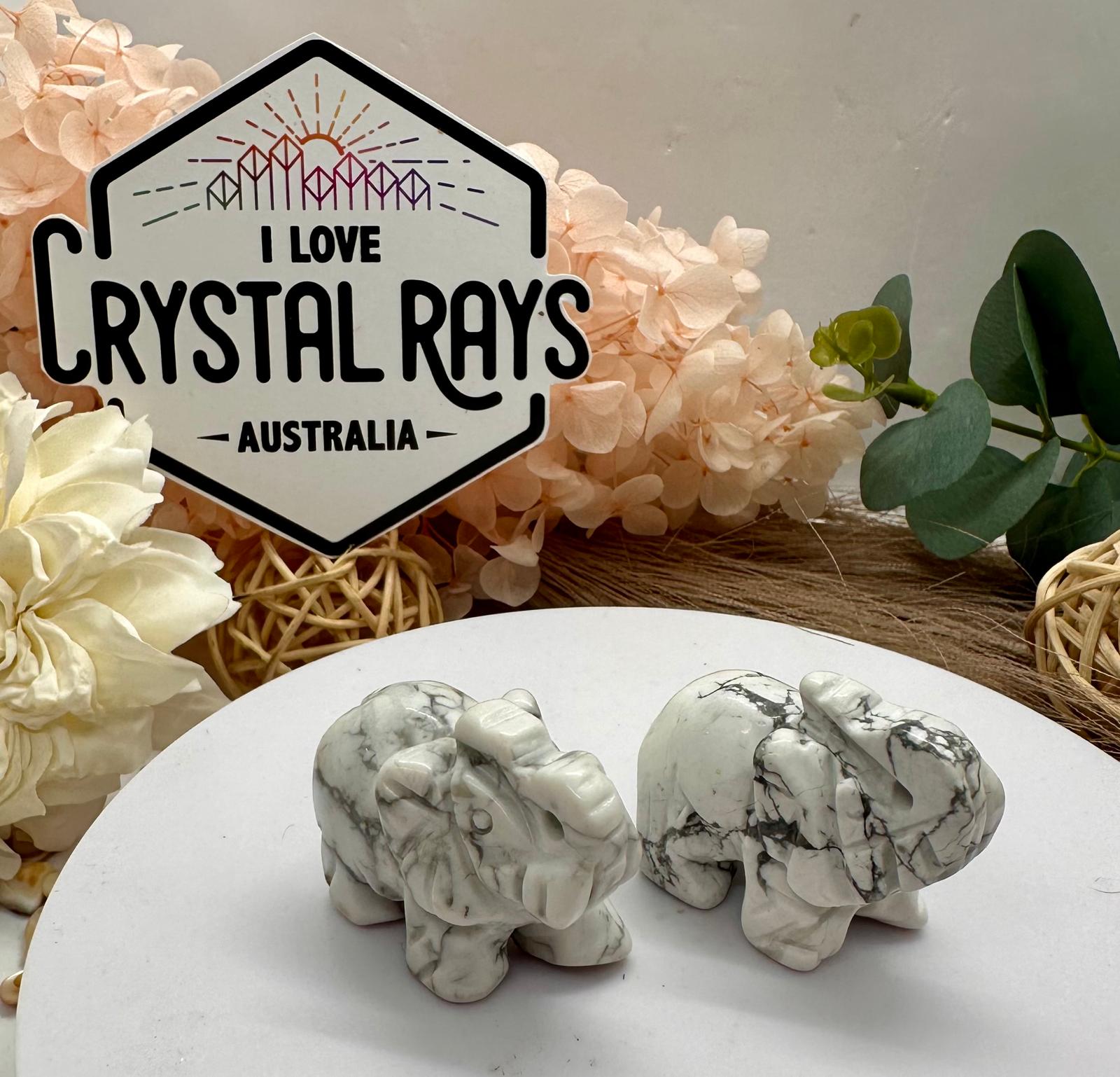 Howlite paired with an elephant carving radiates calm strength, wisdom, and emotional serenity.