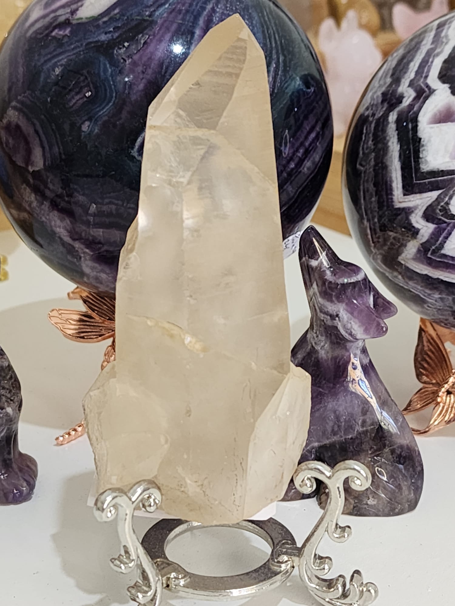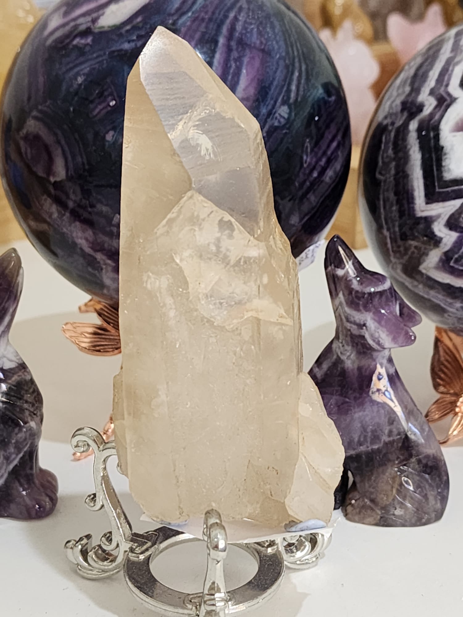 • High Vibration Quartz: Amplifies intention, connects to the Divine Feminine, and supports deep meditation and soul retrieval.