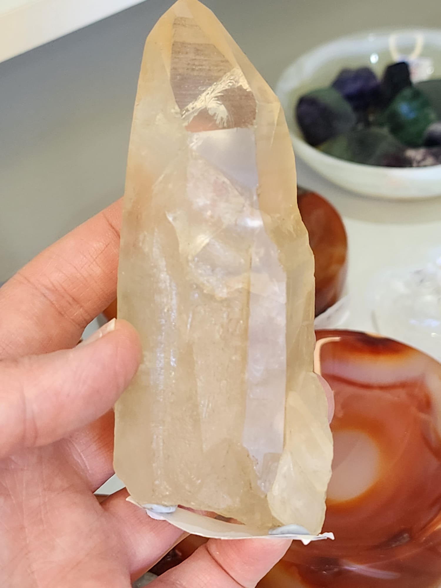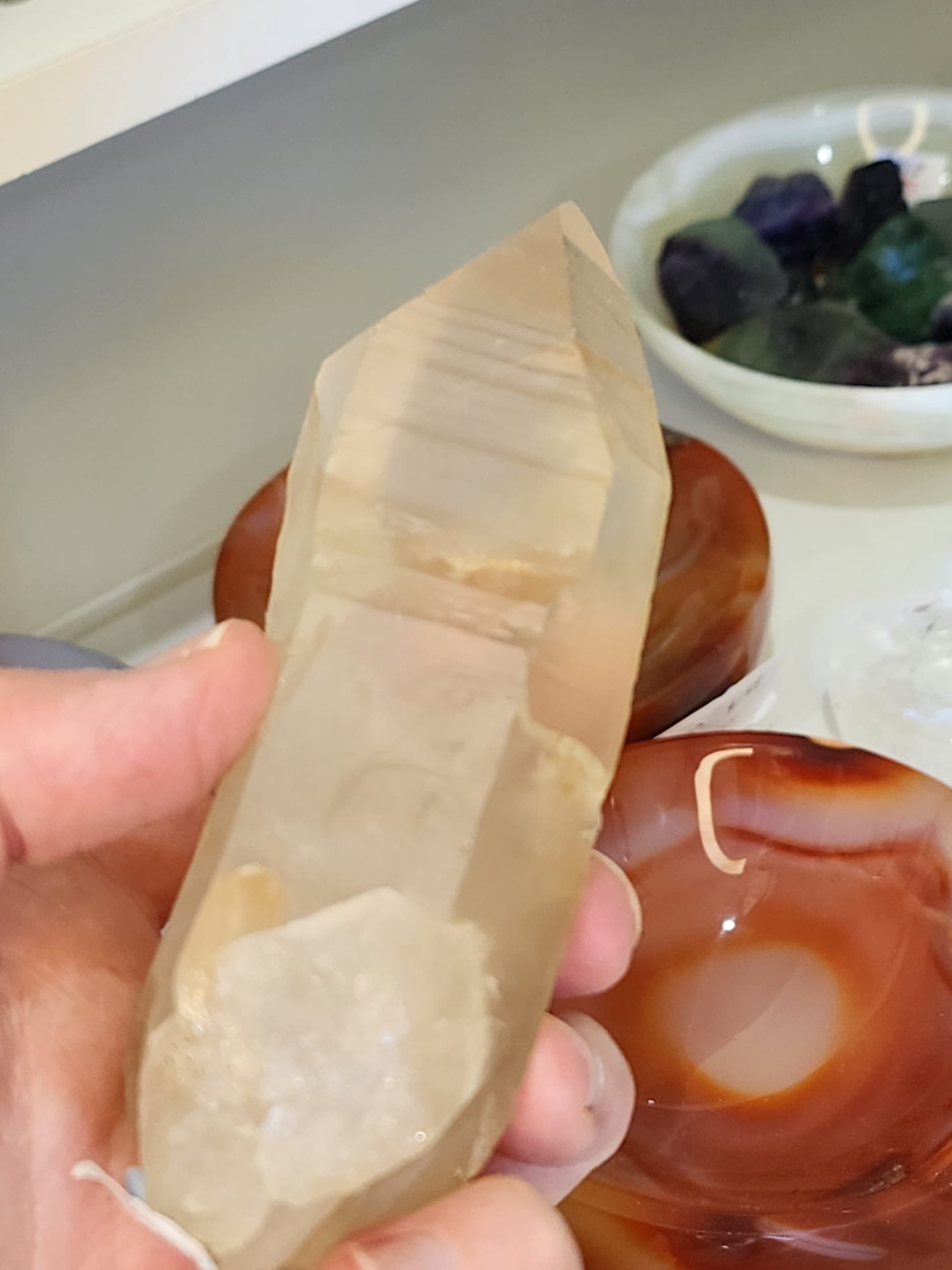 Lemurian Seed Crystals enjoy company, to be held, slept with, kept close by. Used regularly and enjoyed in sight.