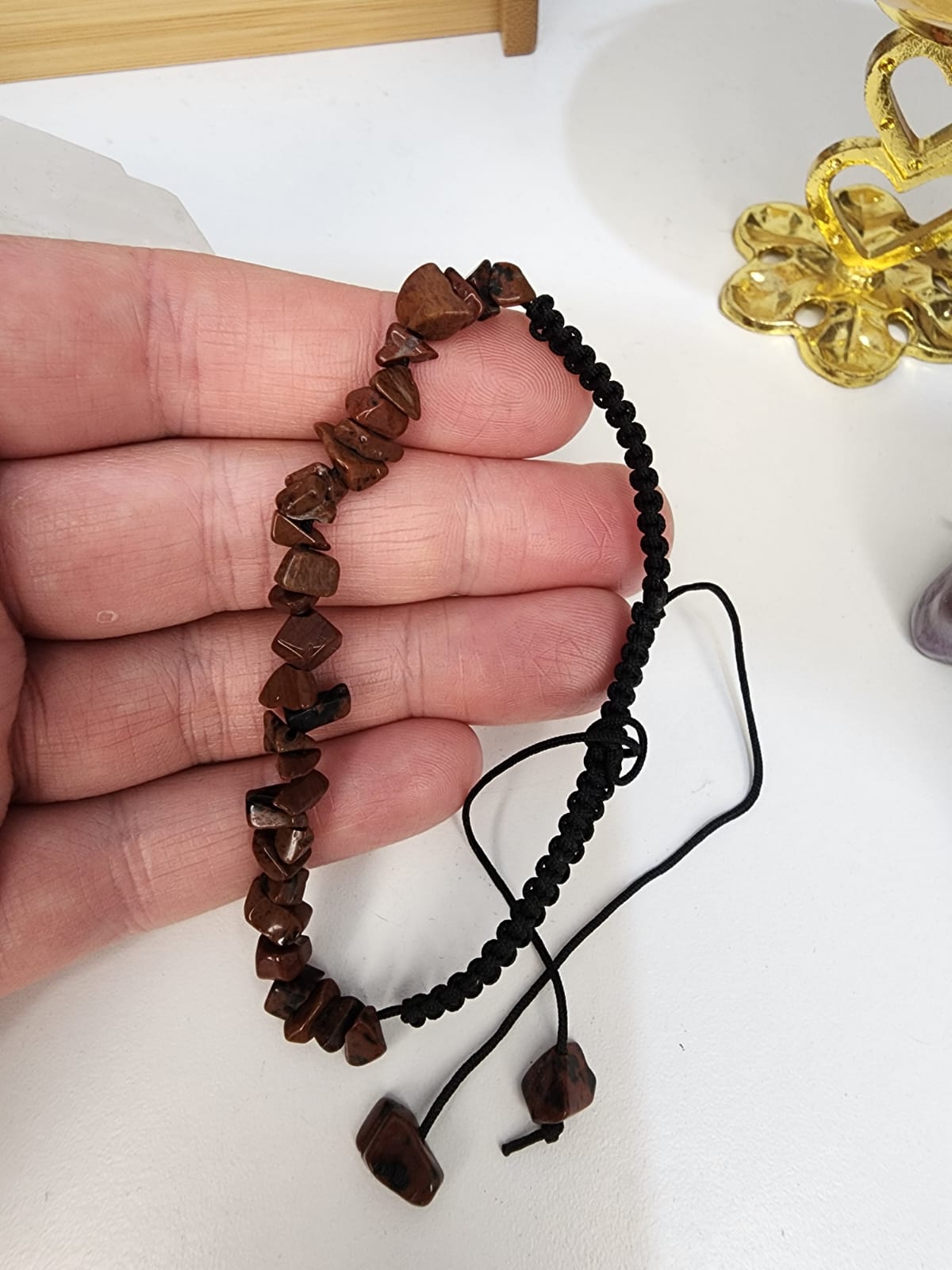 Experience the grounding and protective properties of Mahogany Obsidian with our adjustable drawstring bracelet. This beautiful piece promotes personal growth and increased feelings of stability, perfect for anyone looking to bring balance and stability into their life. Feel empowered and connected with our Mahogany Obsidian Bracelet Draw String.