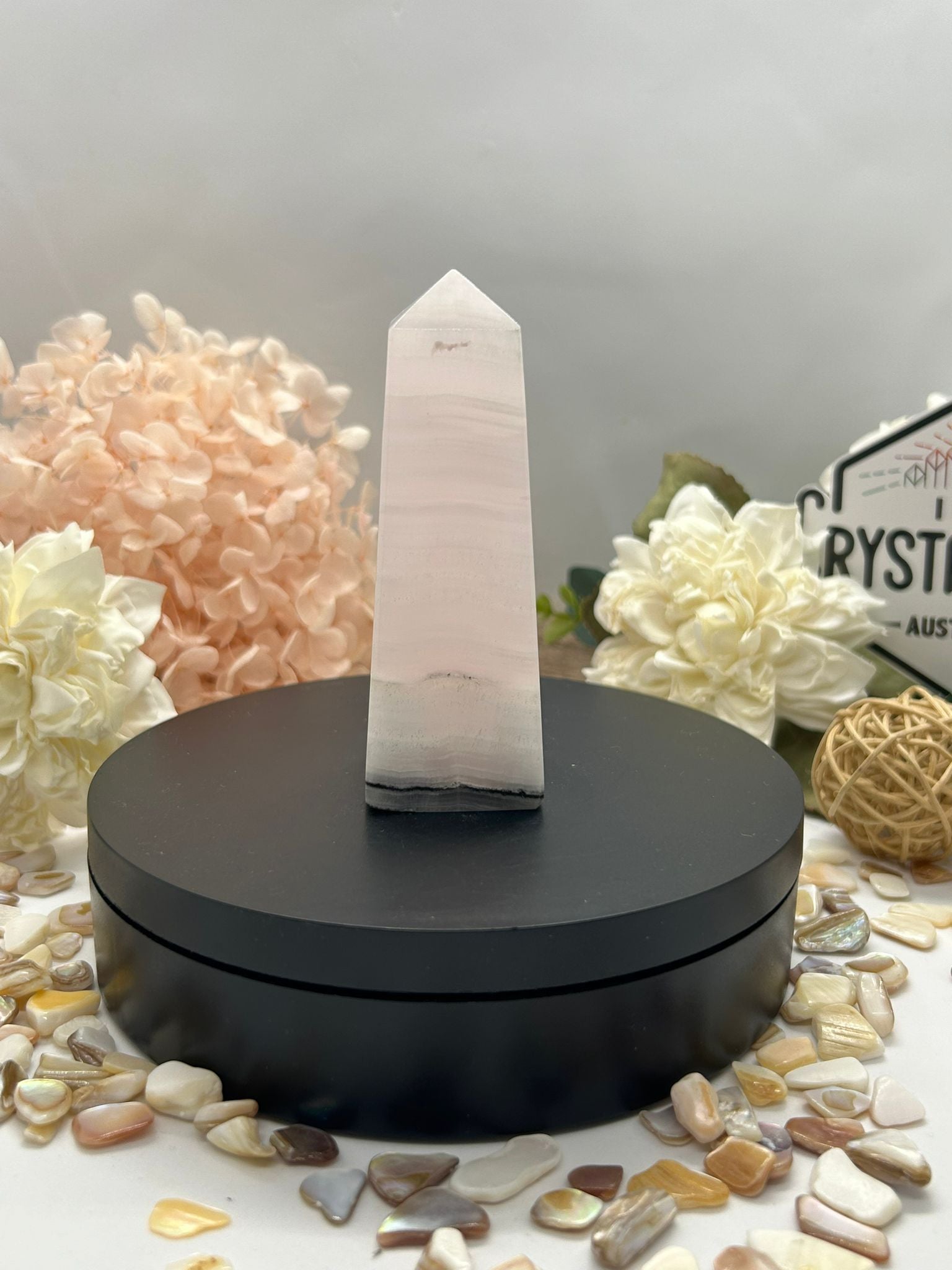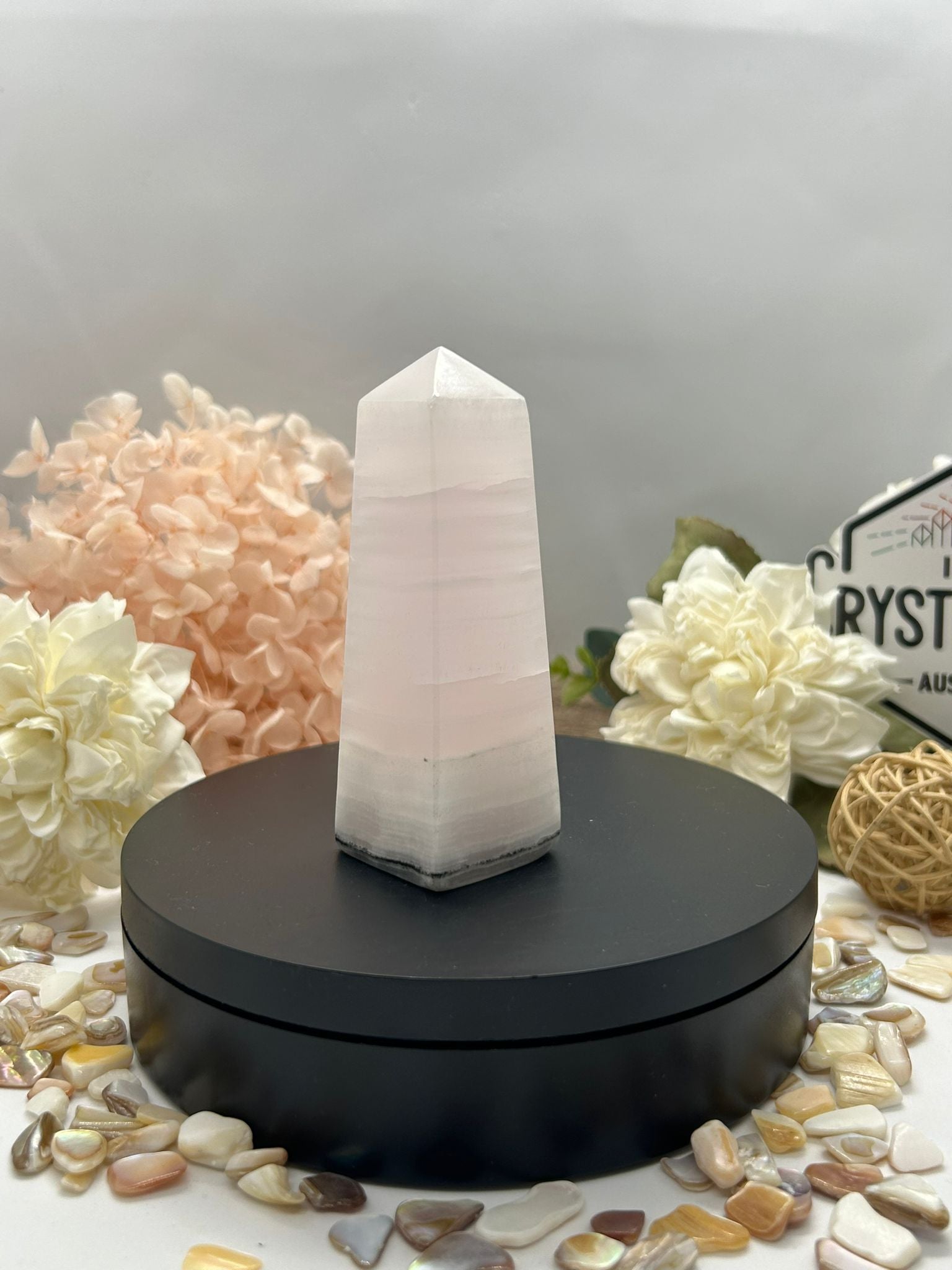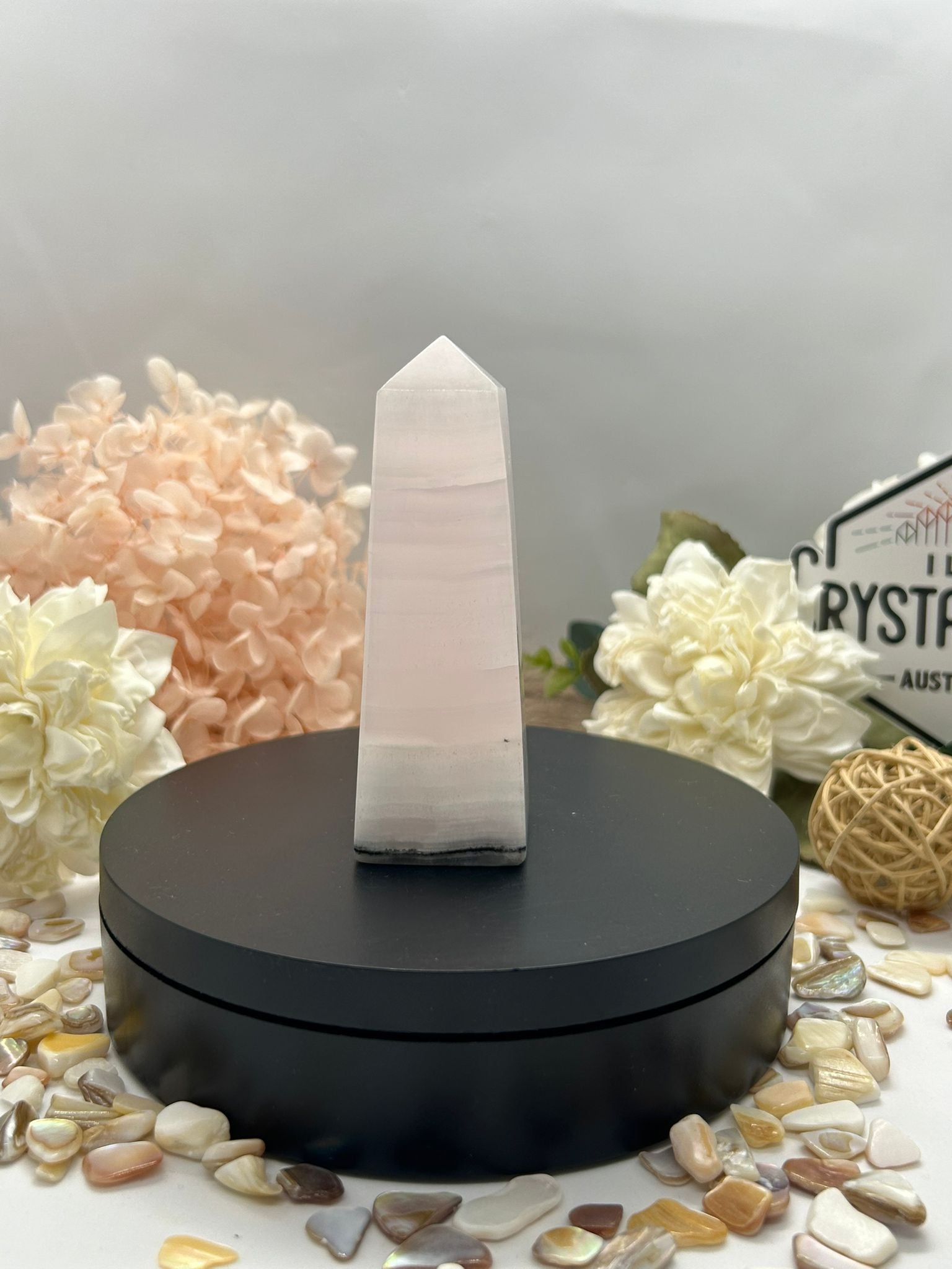 • Appearance: Soft pink with subtle banding or translucence; often polished into smooth towers