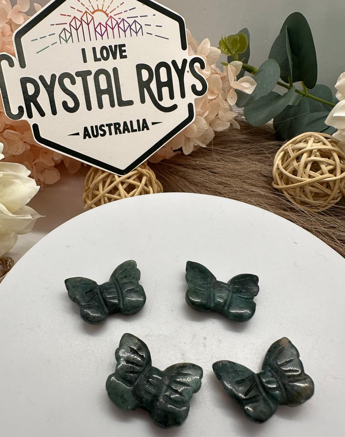 ⢠  These mini butterflies are hand-carved from genuine Ocean Jasper, showcasing its signature orbicular patterns and swirling tonesāgreens, purples, reds, and sea-like grays.