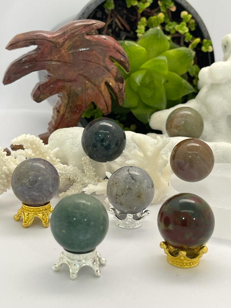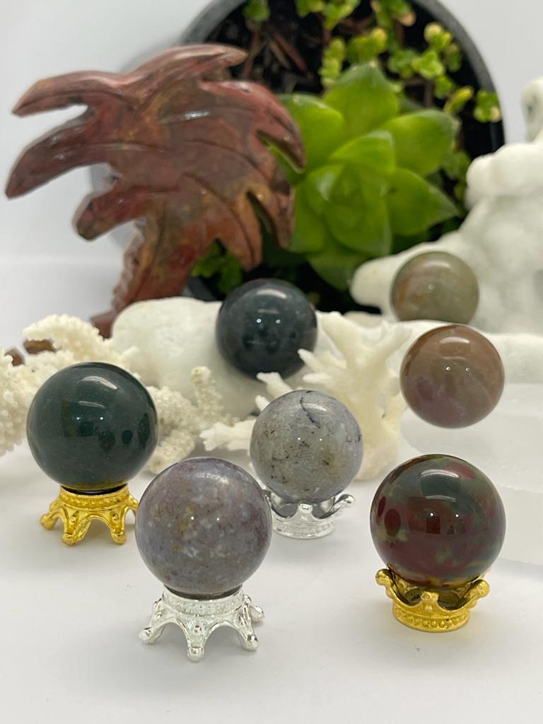 - Spheres emit energy evenly in all directions, making Ocean Jasper spheres ideal for meditation, emotional healing, and room harmonization.