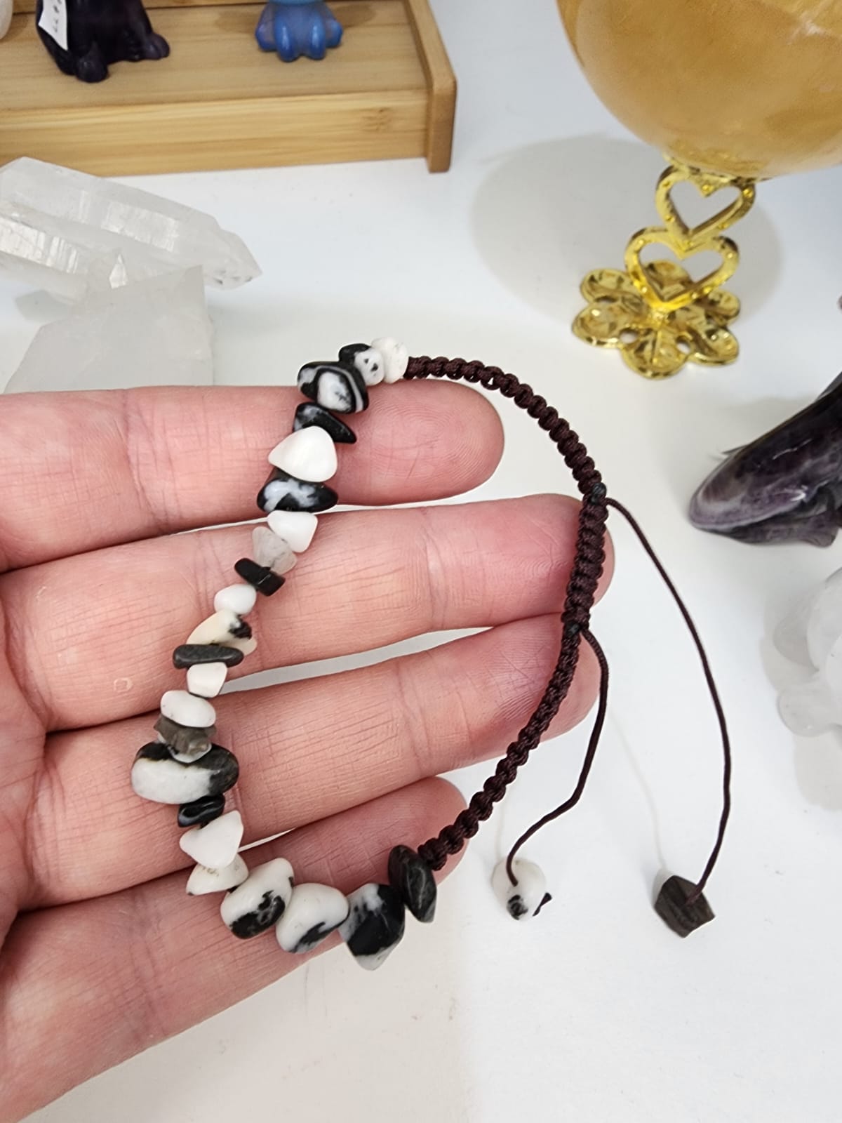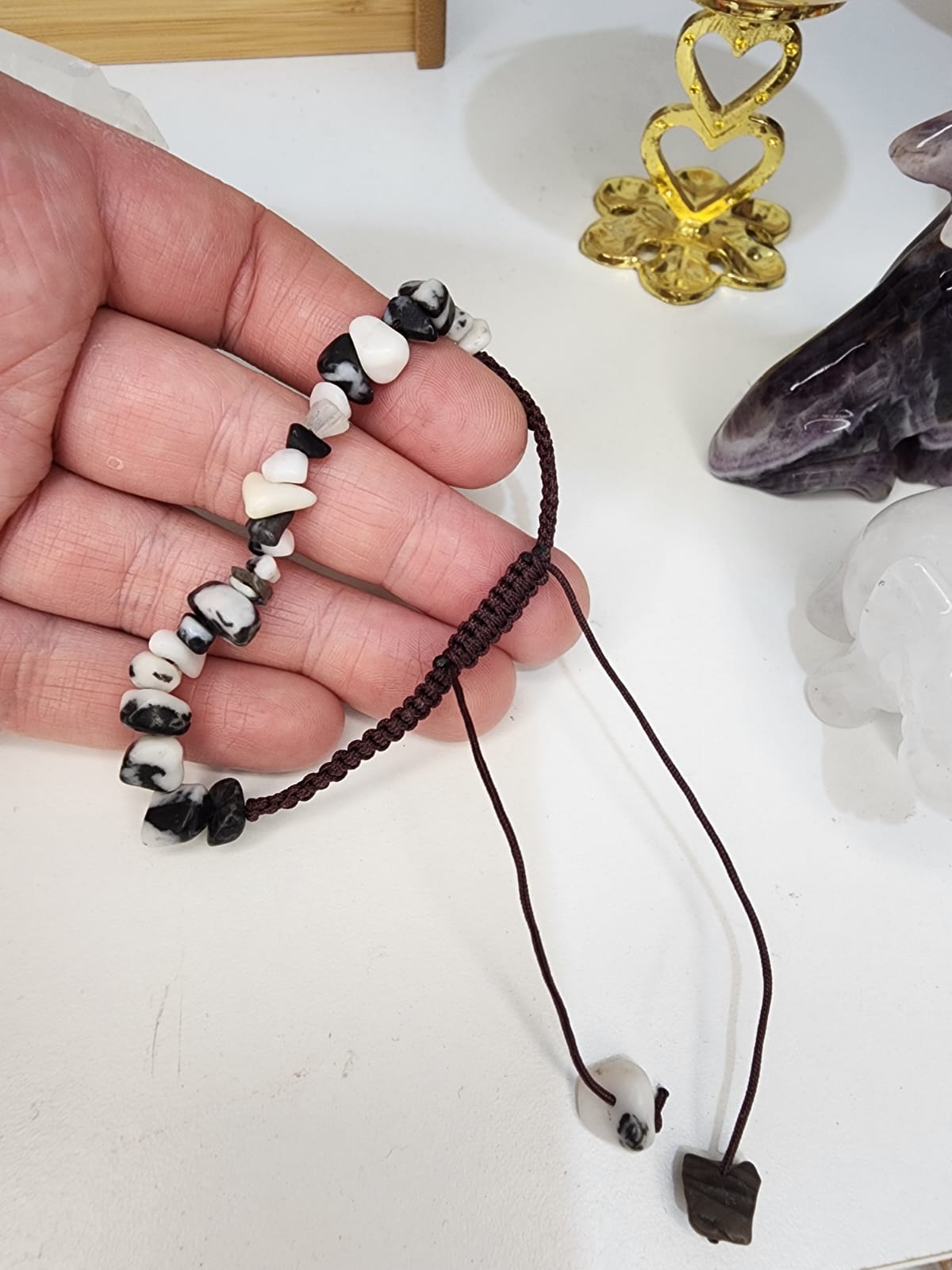 The bracelet has a drawstring that can be adjusted to fit different sizes.