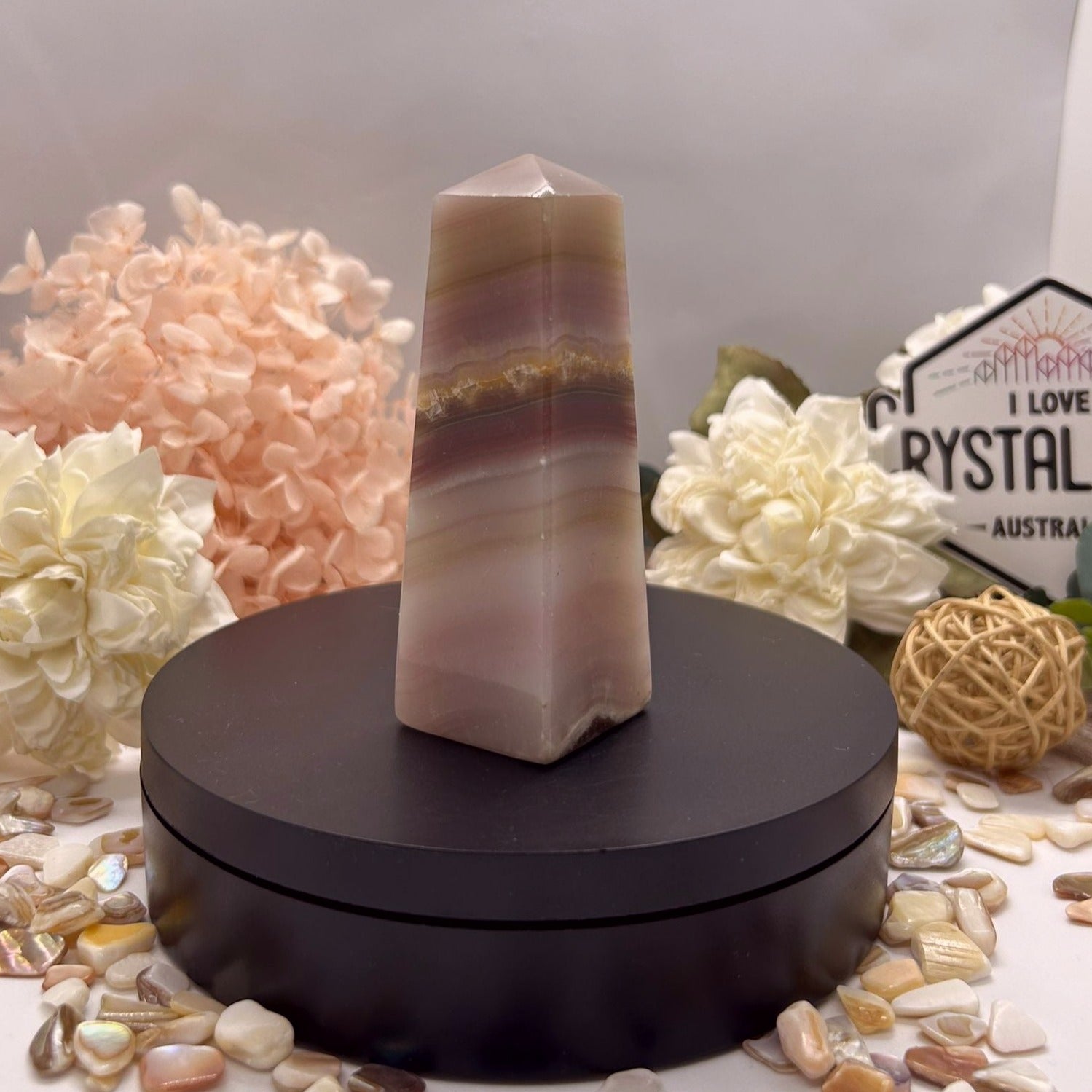 🌸 Crystal Profile: Pink Banded Onyx Tower