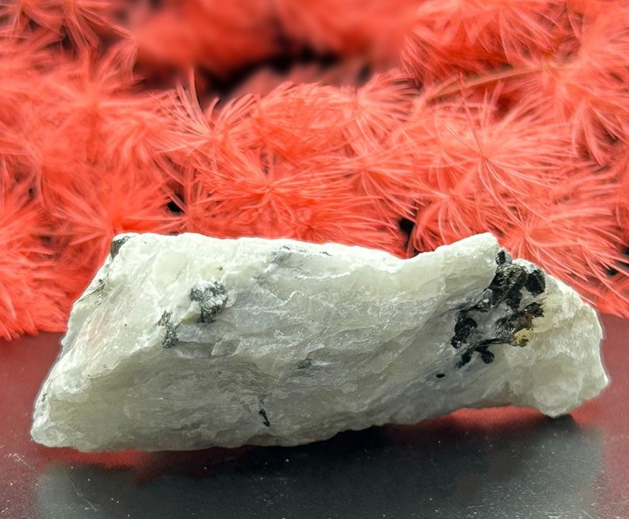 Raw Rainbow Moonstone is a true celestial beauty—milky white with flashes of blue, peach, and sometimes even violet. It’s revered for its connection to lunar energy and the divine feminine, often used to enhance intuition, emotional balance, and spiritual insight.