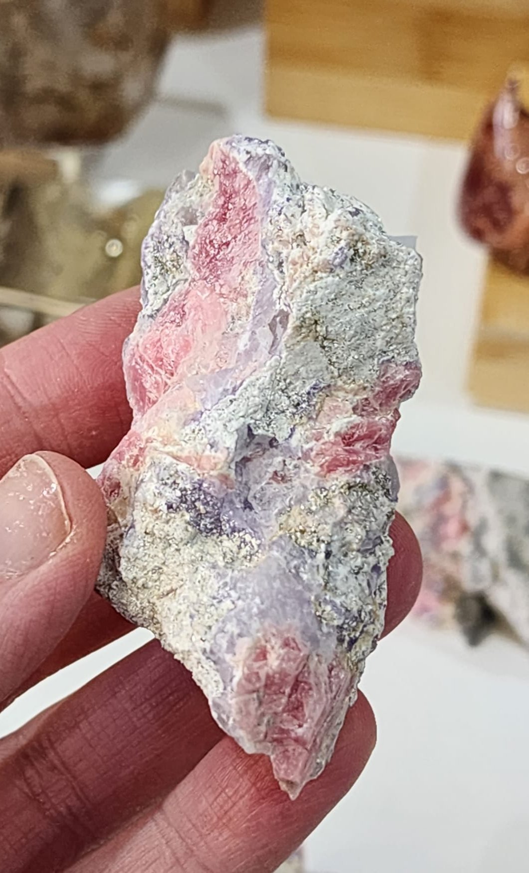 Rhodochrosite in its raw form is a stunning mineral, often showcasing vibrant pinks with creamy white banding. It's not just a visual treat—it’s also cherished for its emotional healing properties, especially around the heart chakra.