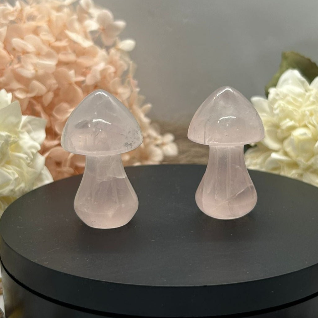 Bring a touch of nature and calmness into your home with our Rose Quartz Mushrooms. Each mushroom is crafted from genuine rose quartz, known for its healing and calming properties, making it the perfect addition to your decor. Embrace peace and tranquillity with these beautiful and unique pieces.