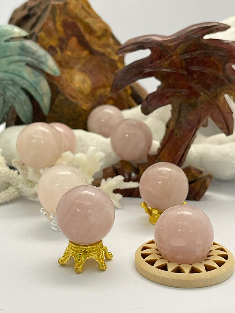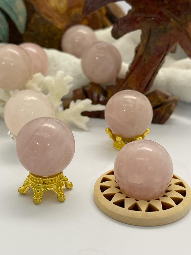 A Rose Quartz sphere radiates unconditional love, emotional healing, and inner peace, making it a gentle yet powerful centrepiece for rituals focused on compassion, forgiveness, and heart chakra work.