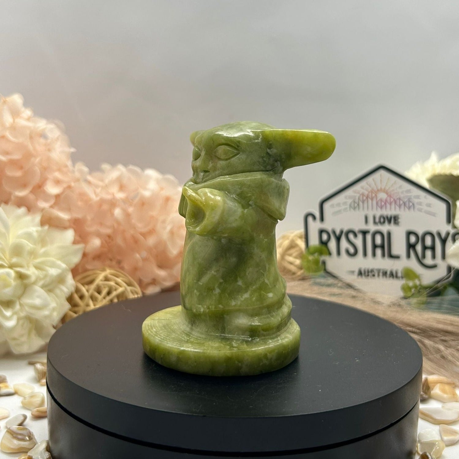 • Jedi Grid of Light: Place the Yoda carving at the center of a grid with Serpentine, Labradorite (for intuition), and Black Tourmaline (for grounding). Add a small lightsaber-shaped wand or LED accent for fun and focus.