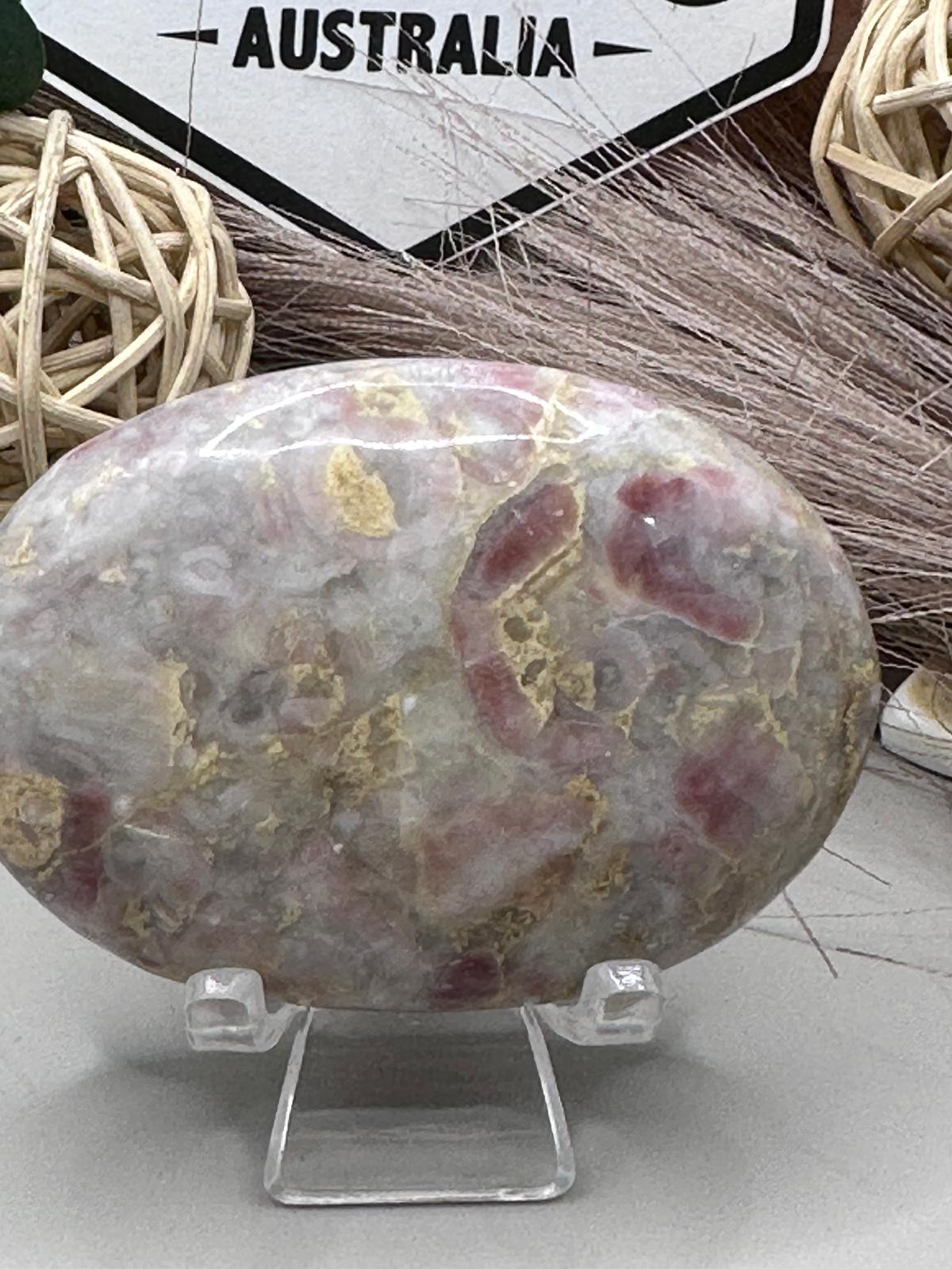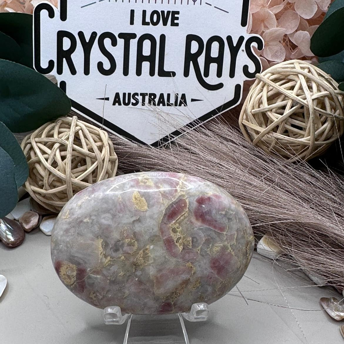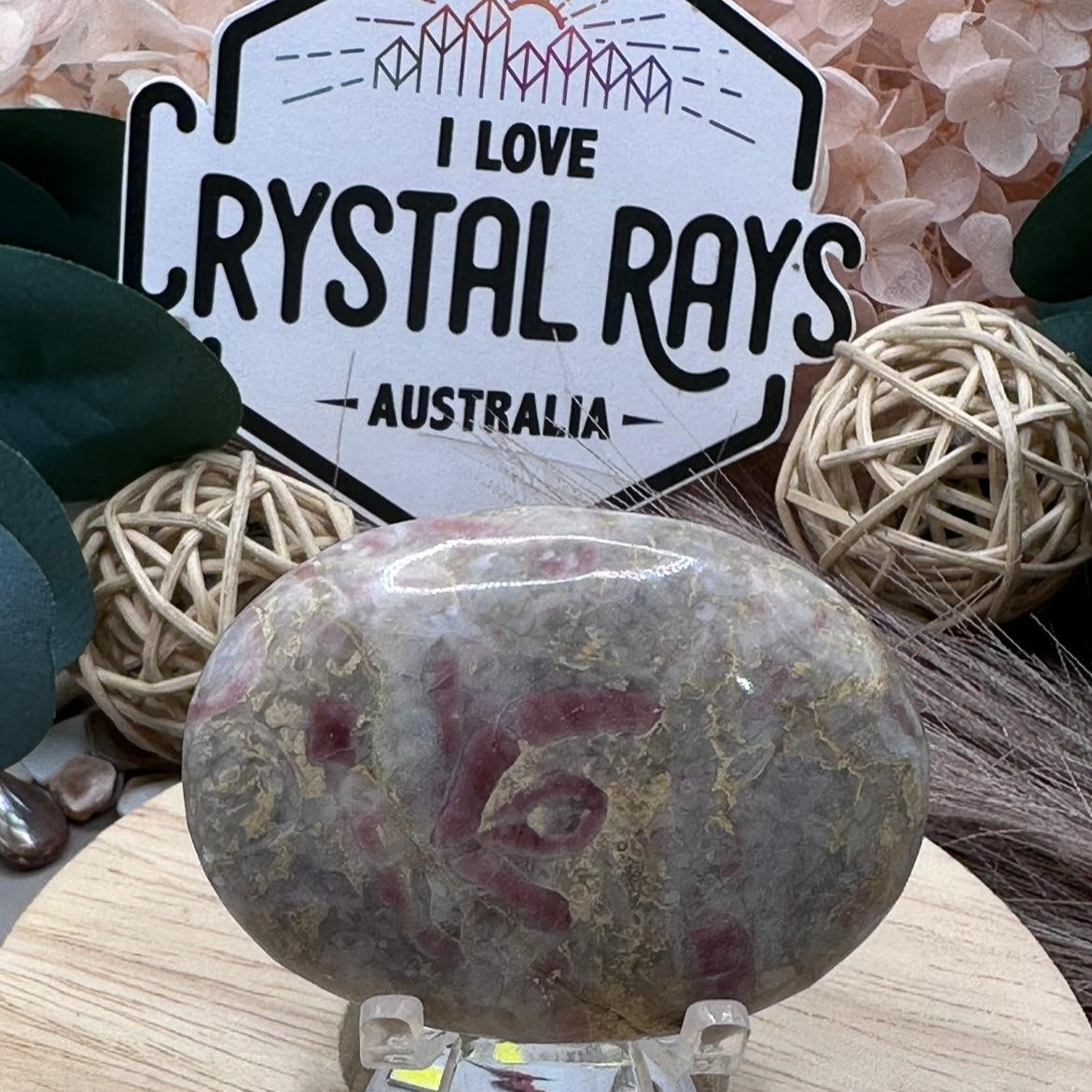 🍓 Strawberry Jasper is a rare and radiant crystal that blends earthy grounding with heart-cantered healing. It’s technically a mix of pink and yellow jasper, red and pink calcite, and white quartz—giving it that juicy, berry-like appearance and a nurturing energy profile.
