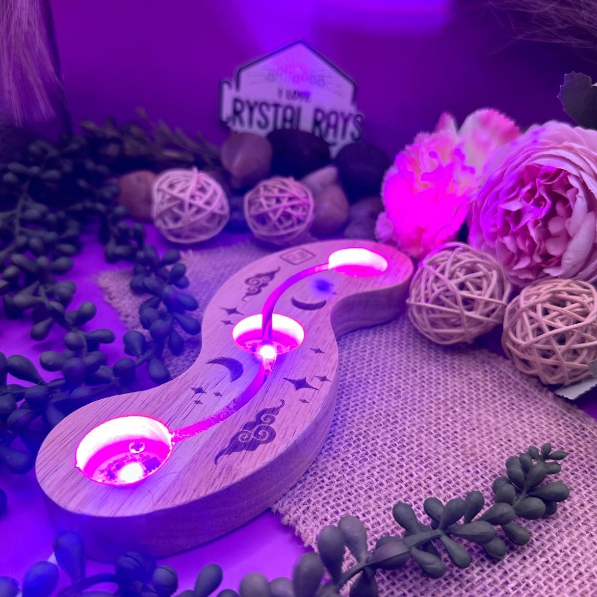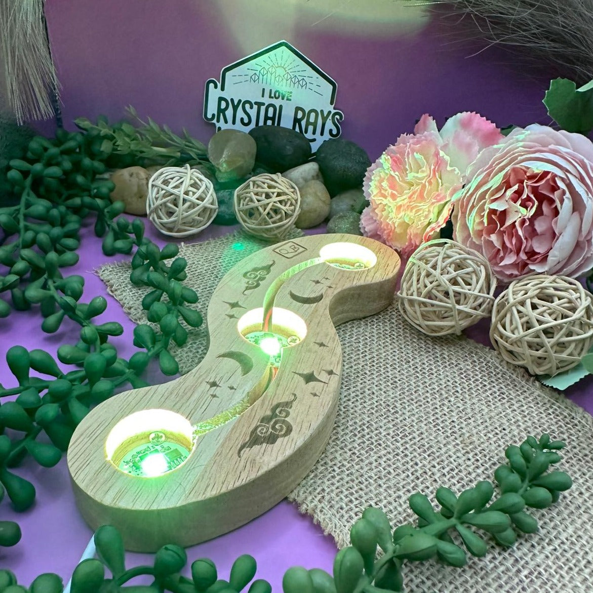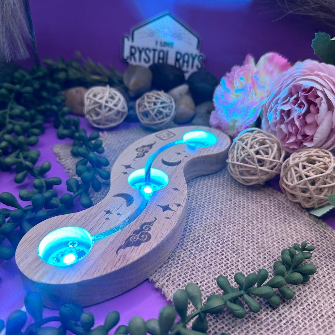 This Colour LED Trio Sphere Stand is a radiant way to showcase your crystal trio with style and intention. Whether you're displaying spheres for chakra alignment, elemental balance, or simply aesthetic joy, this stand brings them to life with a soft, shifting glow.