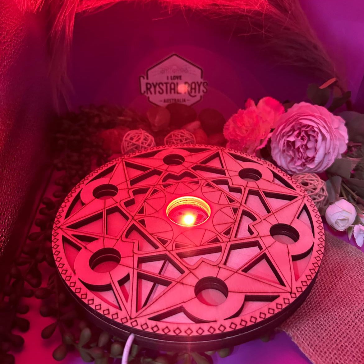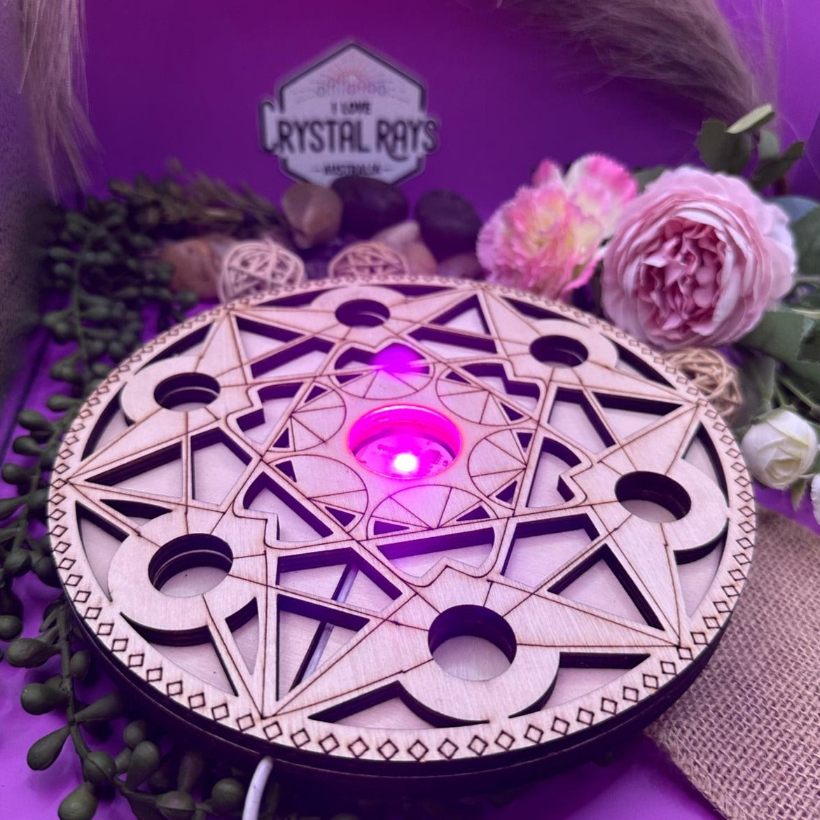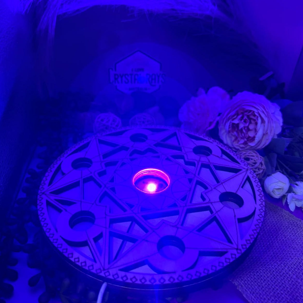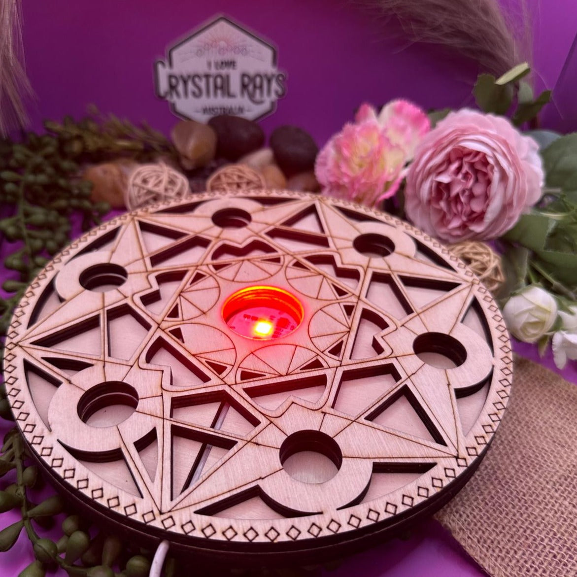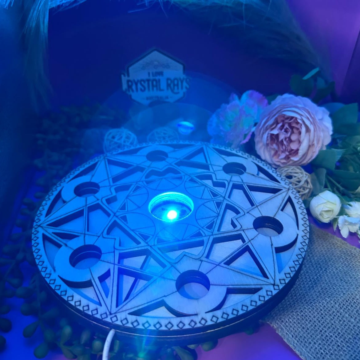 This Colour LED Circle Multi-Sphere Holder is a radiant centerpiece for your crystal collection. Designed to hold up to seven spheres, it cycles through calming hues to create a meditative, magical atmosphere—perfect for altar work, energy grids, or simply admiring your beauties in style.