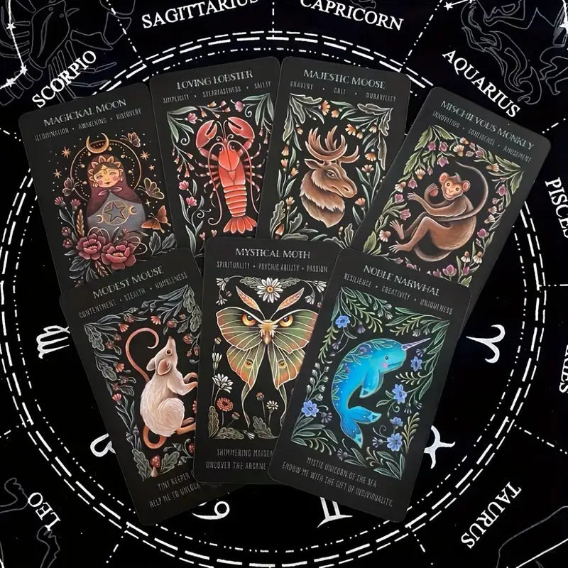 • Grid Integration: Place cards in your crystal grids to channel animal archetypes — like Owl for wisdom or Fox for adaptability