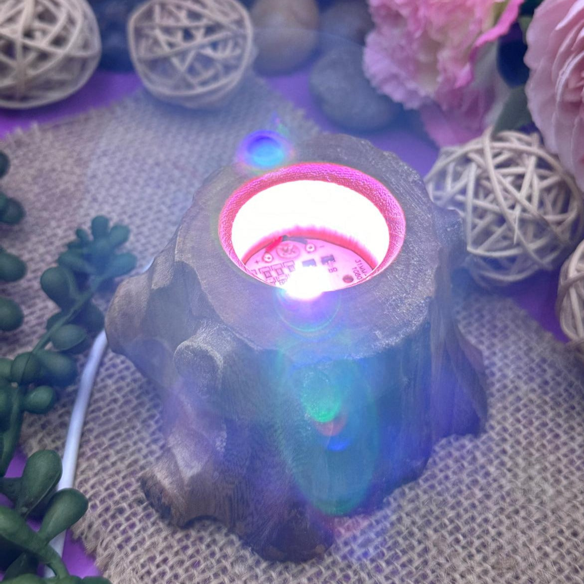 This Colour LED Wooden Tree Stump Stand is a rustic-meets-magical way to illuminate your crystal spheres or carvings. With its earthy texture and soft, shifting glow, it brings grounding energy and visual enchantment to any sacred space.