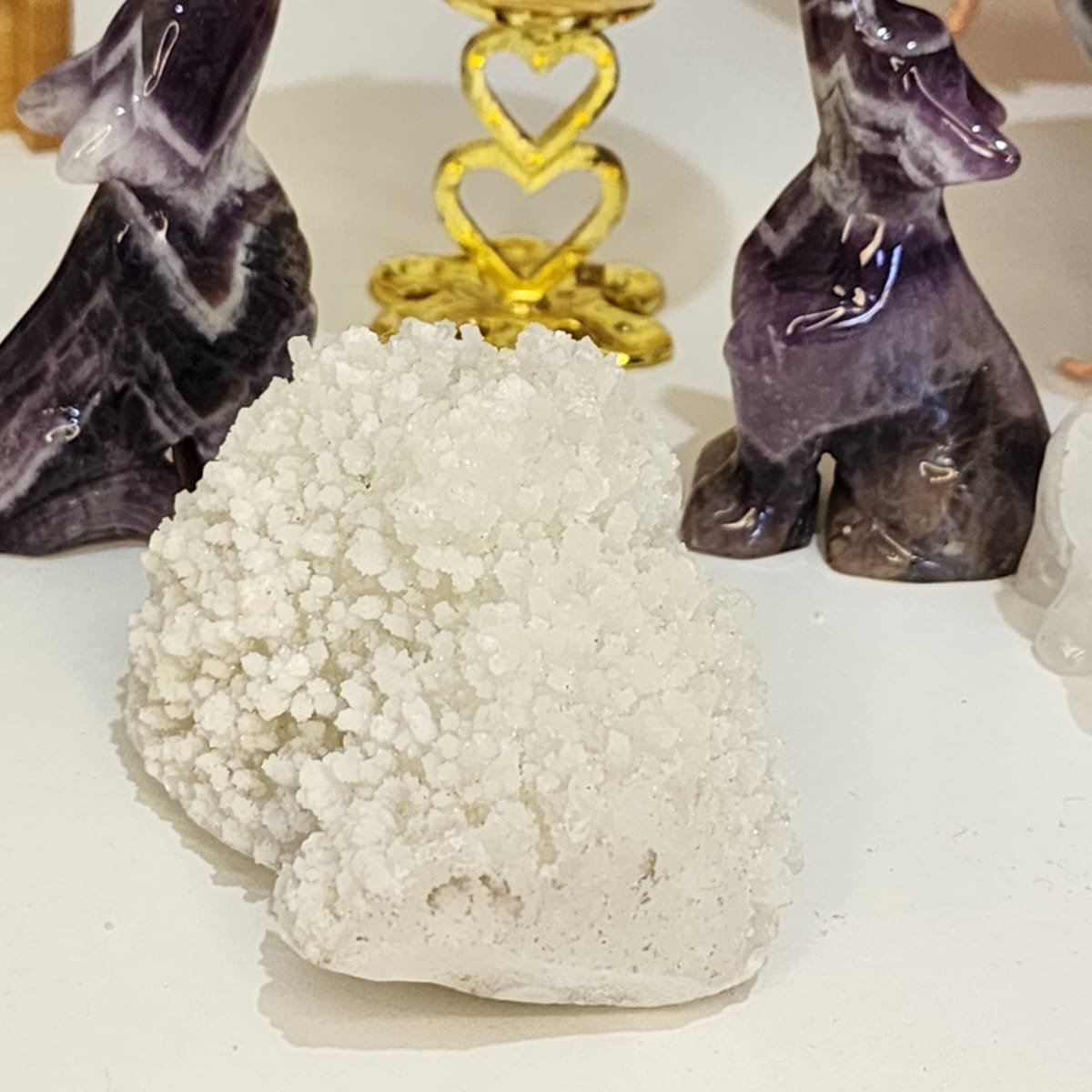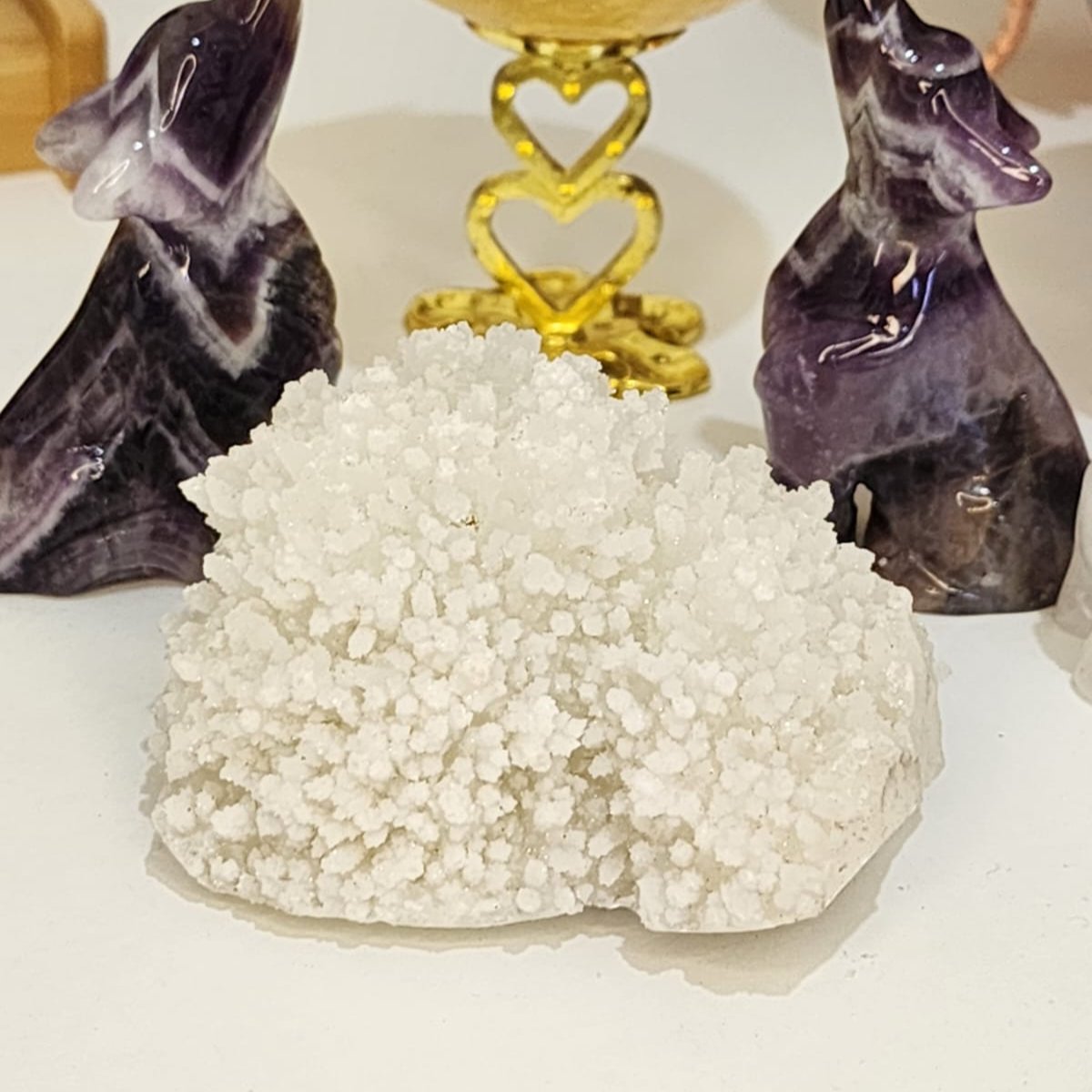 Apophyllite is known for facilitating and enhancing a conscious connection with the spiritual realm. It acts as an energy stimulator, infusing high crystal energy into mystical pursuits and other endeavours.